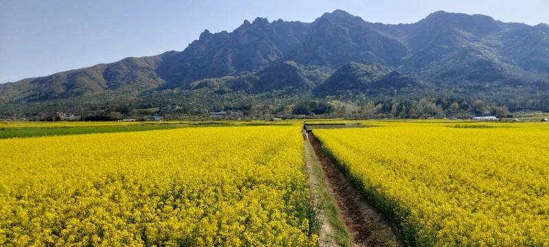남도는 지금 샛노란 유채꽃이 한창이랍니다. 특히 월출산 아래 유채꽃밭은 국내 최대규모로 무려 43만 평이나 되는데(목포mbc 뉴스에 따르면, 유채밭 면적이 100만평을 넘는다고도 합니다), 아직은 사람들에게 그리 널리 알려져있지 않아서 비대면으로 즐기기 좋은 곳이랍니다.