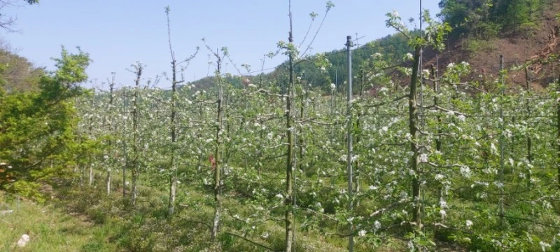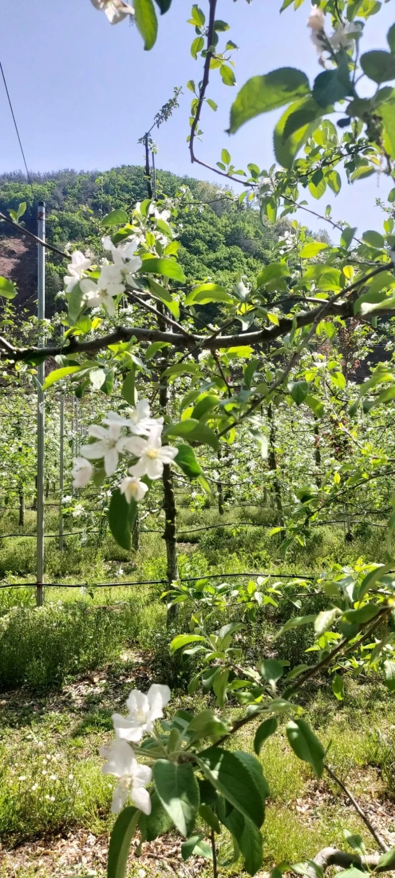 초간정을 한 바퀴 돌아보고, 개울에 내려가 시냇물 소리를 듣다가 올라갔어요. 초간정 옆 사과밭에 하얀 사과꽃이 피었길래 꽃구경하고 작은 출렁다리를 건넌 다음 주차장으로 돌아왔어요. 주차장 쪽에서 바라보는 초간정의 모습도 멋지답니다.