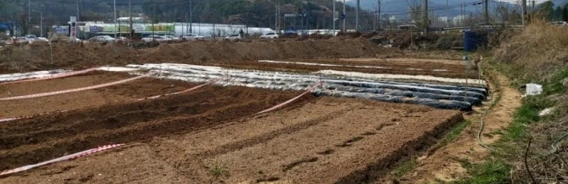다행히 구청에서 밭을 갈아준 지 얼마 안 되어 흙이 부드러워서 호미만으로도 감자 심을 두룩을 만들 수 있었다. 딱 한 이랑만 만들어서 간격 맞춰 감자를 심고 나니 온몸이 먼지투성이에 땀벅벅. 빈 땅에 친환경비료 남은 걸 뿌리고 호미로 긁어서 한 번 헤집어놓고 돌아왔다.