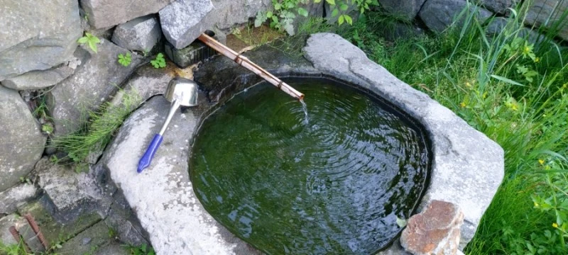 일주문 지나 주차장으로 꺾어들어가는 왼쪽 아래에 약수터가 있어요. 돌틈에서 나오는 약수는 특히 머리가 맑아지는 감로수로 널리 알려져 있다고 해요. 마침 가져간 생수가 똑 떨어져서 대나무통으로 졸졸졸 흘러나오는 약수를 한 병 받아서 마셨는데 시원하고 달더라구요^^