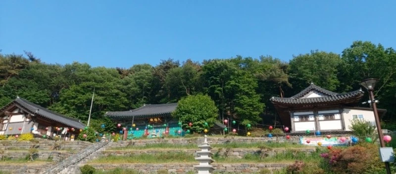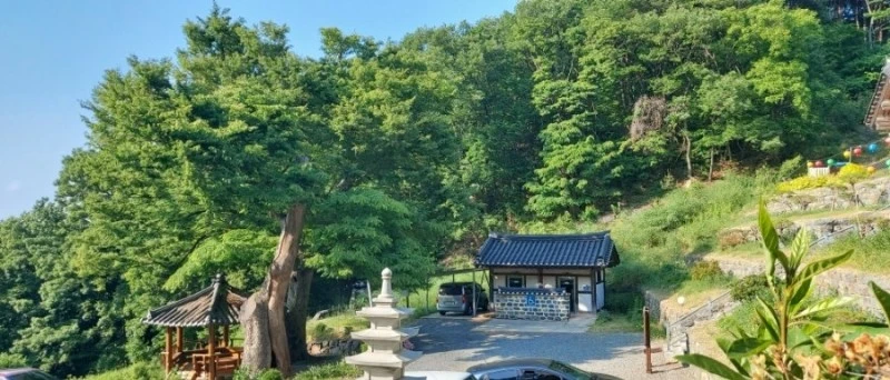 신라 담화선사가 창건하였으며, 조선 철종 때 산신각을 중수하였어요. 1984년 법용스님이 주지로 부임한 후 절의 모습을 크게 바꾸었는데요, 1987년에 대웅전, 1989년에 삼성각을 각각 중수했으며, 1991년에 일주문을 세웠고, 1992년에는 요사채를 지어 오늘에 이른다고 해요. 대웅전에는 부처님과 관세음보살님이 도지정 유형문화재로 등록이 되어있어요.