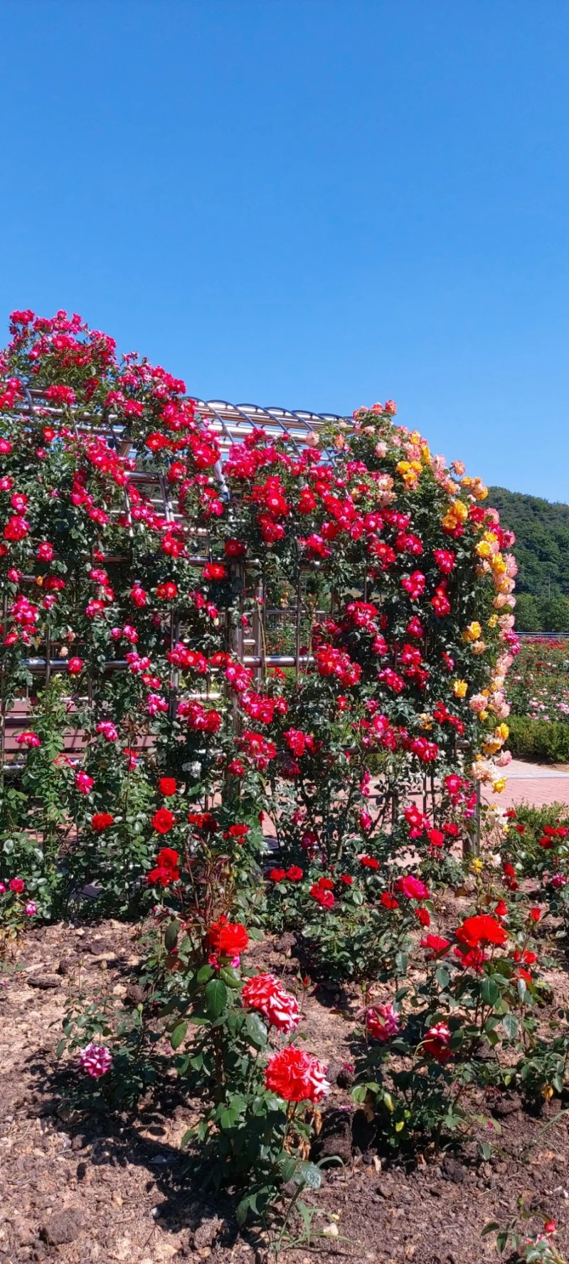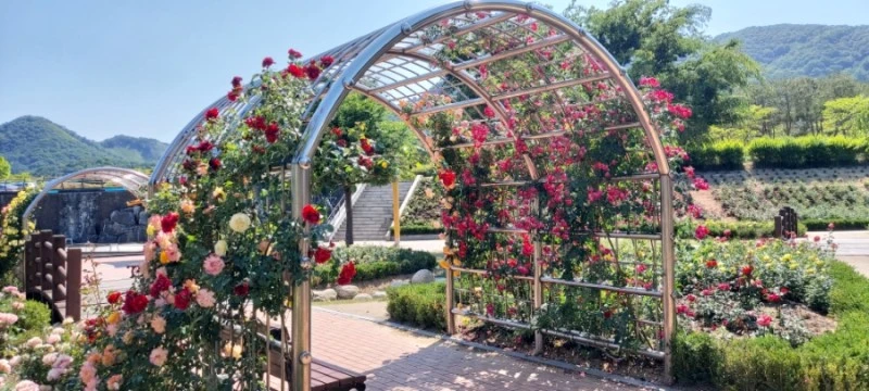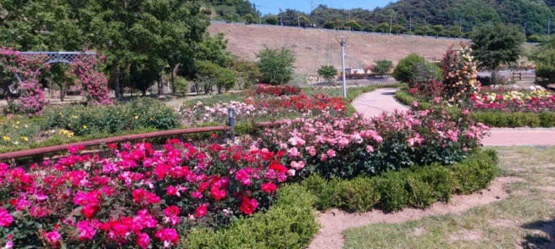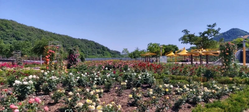장미공원에는 체리 메이딜란트 장미, 하이브리드 티 장미, 랜드스케이프 장미, 플로리분다 장미, 덩굴장미, 멘티크 터치 장미, 미니어처 장미 등 총 130종 13,780주의 장미가 장관을 이뤄서 아름다운 장미를 보며 힐링할 수 있어요.
