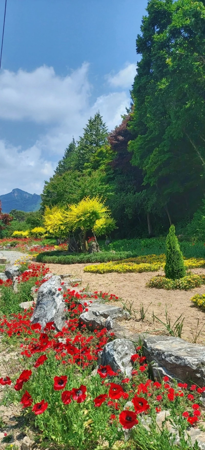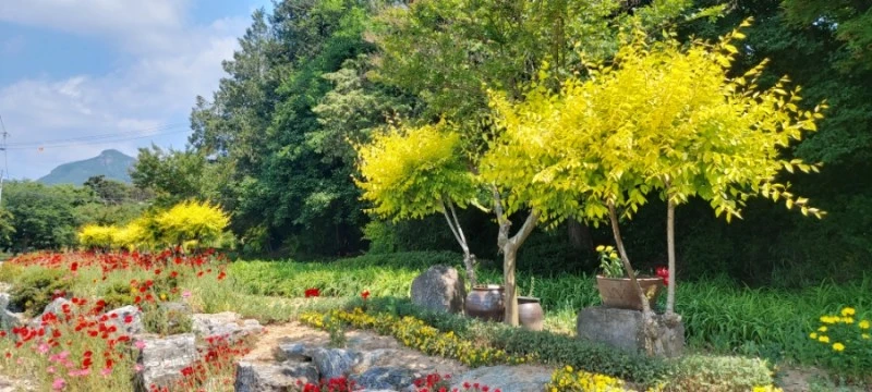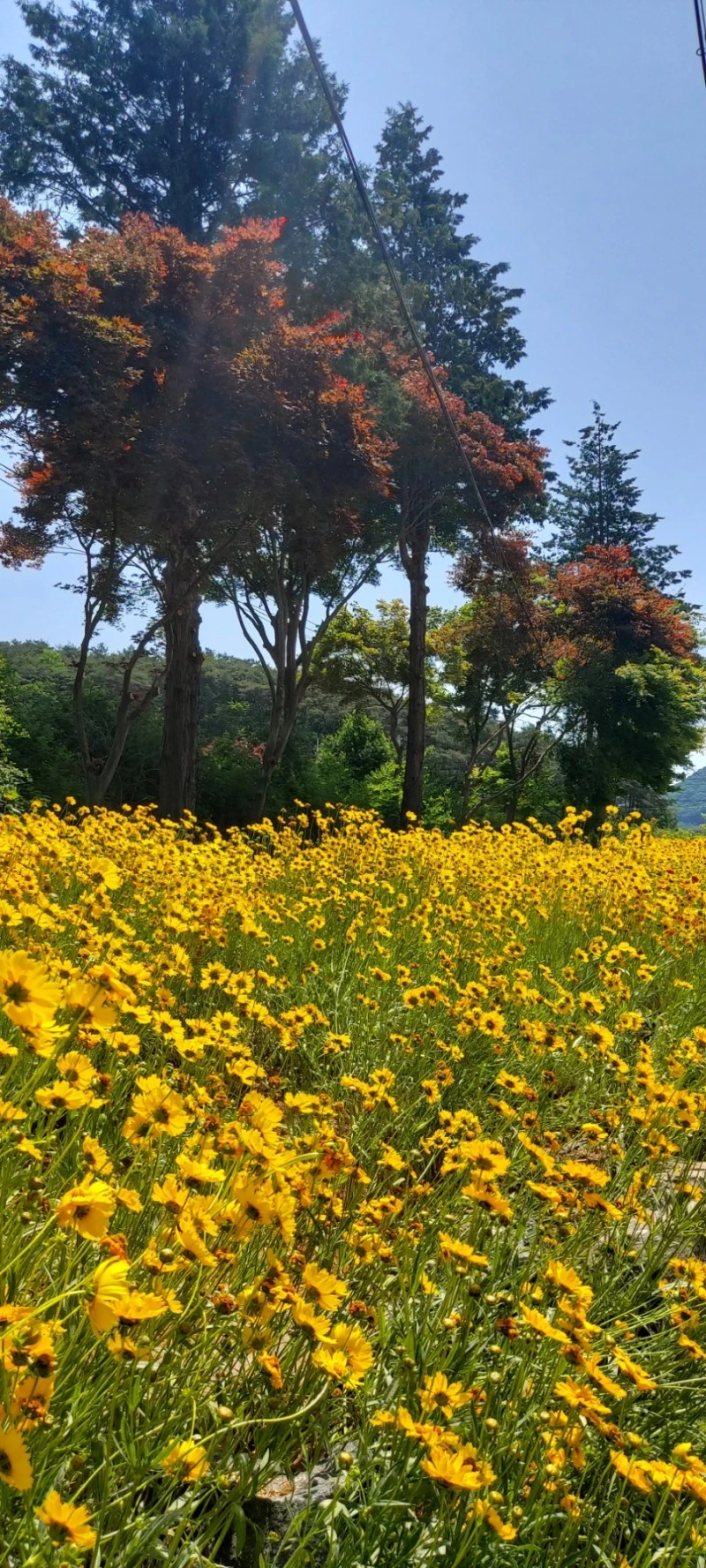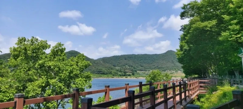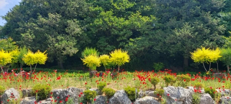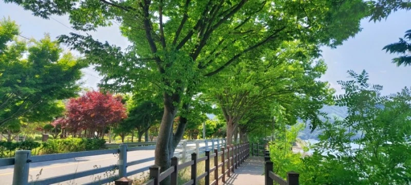 장성호 데크길을 따라 걸으며 마주친 초여름 풍경이 정말 시원하고 예뻤답니다. 인근 마을에서 조성한 꽃양귀비, 금계국 꽃길도 눈이 번쩍 뜨일 정도로 예뻤고, 꽃길을 마주한 곳에 있는 카페와 가든풍경도 참 멋졌어요.