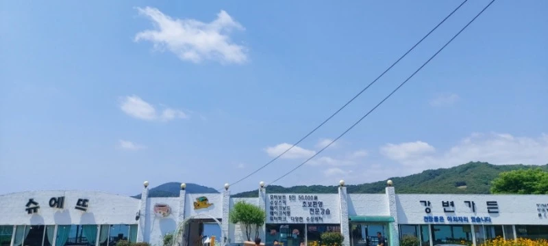 슈에뜨카페에 들어가면 장성호 선착장 주변의 풍경을 감상하며 차 한 잔 하시기 좋겠더라구요. 강변가든과의 사이에 장성호 선착장으로 들어가는 입구가 있는데 이곳에선 요트, 제트스키같은 수상레져와 아이들을 위한 물놀이장소도 마련되어 더위를 물리치기 위해 찾기에 더욱 좋은 곳이었어요.