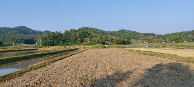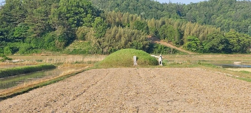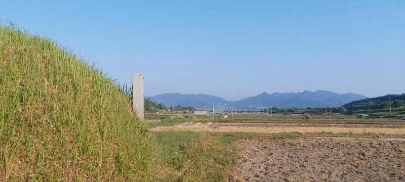 1795년(정조 19)에 황대중 장군의 충효 정려각이 구상마을에 건립되었는데, 정려각에서 500여 미터 떨어진 논 가운데에 애마지총이 있어요. 사람의 무덤도 이렇게 멋지게 만들기가 어려운데 척동마을 푸르른 들판 한가운데 우뚝 솟아오른 말무덤은 한눈에도 관리가 잘 되고 있음을 알 수 있었어요.