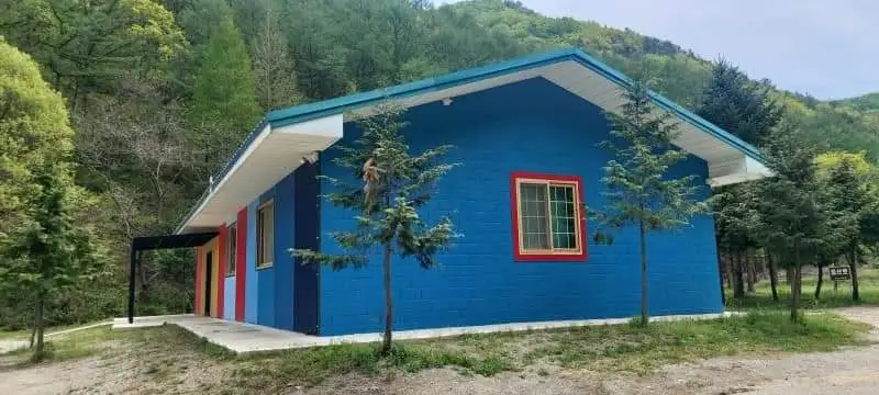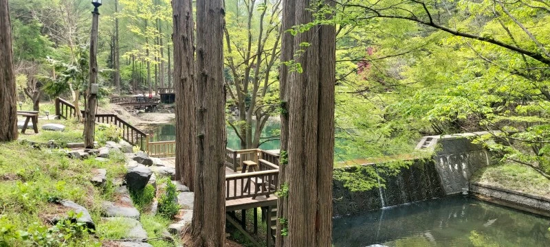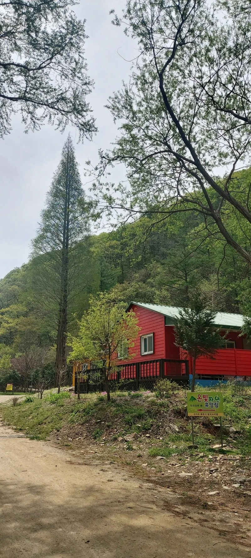 이렇게 잘 가꿔진 휴양림을 무료로 개방해주신 온빛자연휴양림의 쥔장님께 감사한 마음이 드는 한편, 화장실이 잘 보이지 않아 이용에 불편이 있는데요, 호수너머 주인집 뒤편의 화장실을 개방해두고 있어서 그쪽의 화장실을 이용하면 된답니다. 그런데 아무래도 공공화장실이 아닌 개인집의 화장실인 만큼 좀더 깨끗하고 조심히 써야겠다는 생각이 들더라구요.