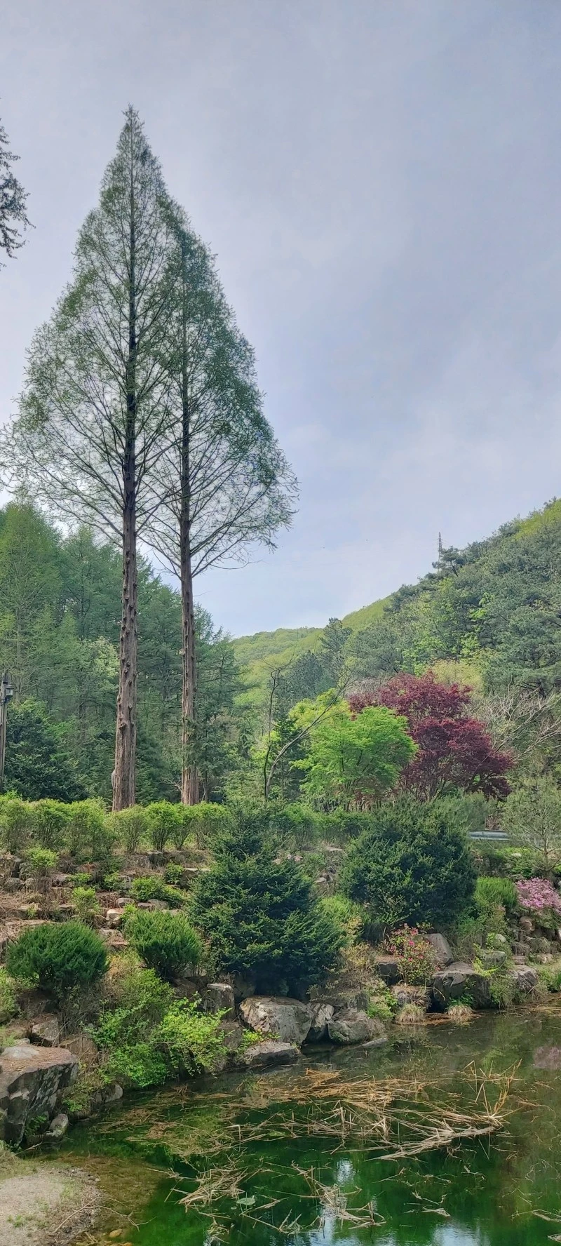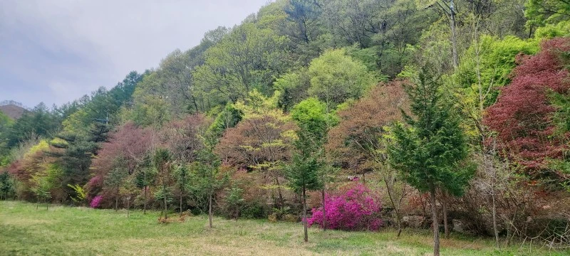 가을 풍경이 더욱 이쁜 곳이지만 봄에서 여름으로 건너가는 이즈음의 풍경도 가을 못지 않게 아름다웠답니다. 이곳은 개인 사유지인데도 일반인들에게 무료개방을 해주고 있는 감사한 곳이에요. (대한민국 구석구석에 나온 '온빛자연휴양림 홈페이지'로 소개된 논산시 공식블로그에는 휴양림에 관한 문의를 논산시청으로 하라고 나와있지만, 이곳은 개인사유지라 논산시청에서 따로 관리를 해주진 않으니 잘못된 정보예요. 논산시청에 알아본 결과, 휴양림의 주인은 정확히 누구인지 알 수 없으나 휴양림 안쪽의 작은 호수 옆에 지어진 노란 통나무집이 주인집이라고 하네요.)