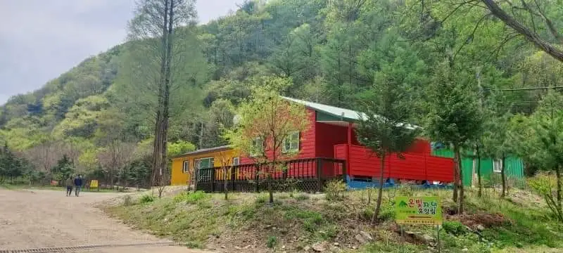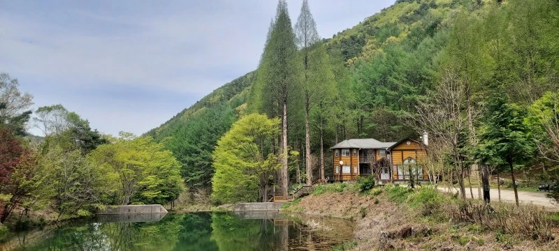 휴양림 입구부터 쭉쭉 뻗어올라간 메타세콰이아나무들이 눈을 시원하게 해주고, 400m 안쪽에 마련된 주차장 주변에 지어진 알록달록 산뜻한 색감의 집들이 푸른 숲과 잘 어울리는 온빛자연휴양림은 곳곳이 아름답지만, 주차장에서 다시 400m쯤 들어가면 나오는 호수 주변 풍경이 가장 예쁘답니다. 메타세콰이어나무와 노란 통나무집이 어우러져 이국적인 풍경을 보여주거든요. 계절에 따라 이 호수 주변의 풍경이 각양각색으로 변하는 모습을 보는 것도 참 좋겠다 싶은 곳이에요.