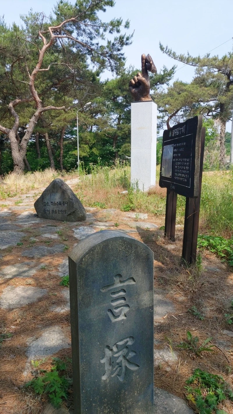 말무덤의 표지석이 설치된 것은 1990년이고, 말무덤 주변에 입술에 손가락을 대고 '쉿!'하는 모습의 조각상과 말에 관련된 격언들을 새긴 돌들이 말무덤 입구와 주변에 세워져있다.