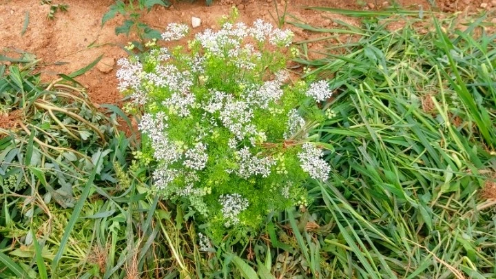 밭 끝자락 가운데엔 내가 따로 심지도 않은 고수가 스스로 자라나 꽃이 피어있었다. 봄에 그 자리에 나는 게 그냥 풀은 아닌 것 같아 냅두길 잘했다. 고수꽃 주위로 풀을 모아놨더니, 완전 풀속에서 피어난 꽃이 되었다.^^