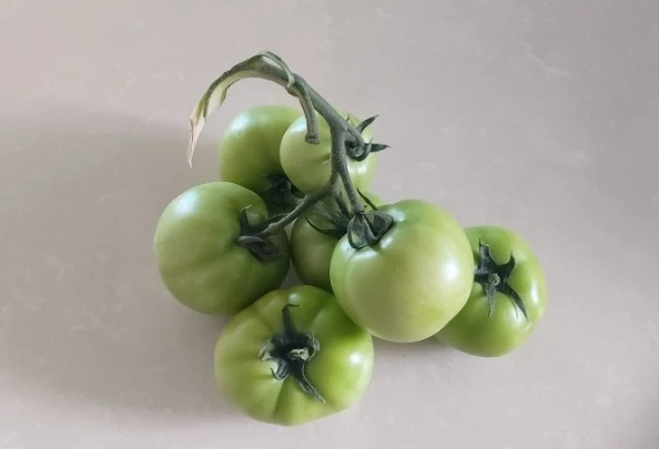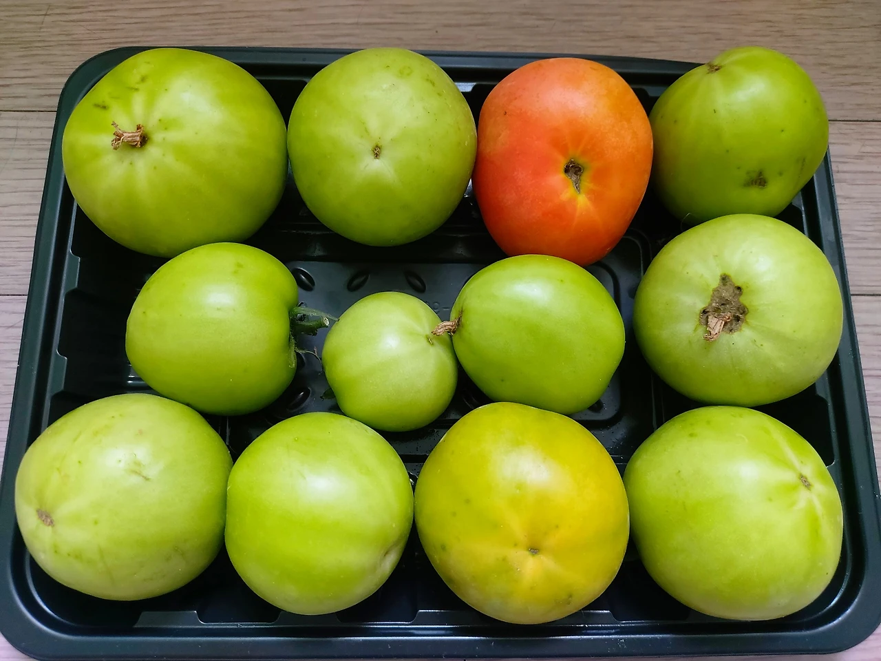 아직 초록빛인 토마토는 바로 먹을 수는 없고, 그렇다고 버리기에도 아까워서 일단 집으로 가져왔더니 딸이 초록 토마토는 감자처럼 솔라닌이라는 독이 있어서 그냥 먹으면 안 되고, 빛이 안 드는 곳에 두고 후숙을 시켜서 빨갛게 되면 먹을 수 있단다. 그래서 부엌베란다 아래 두고 지켜보는 중인데 며칠새 하나가 익어가고 있다. 나머지 토마토도 조만간 붉은 빛으로 익어가리라 기대한다.