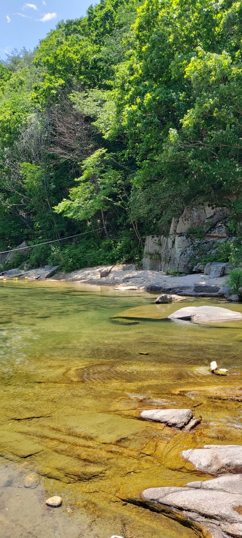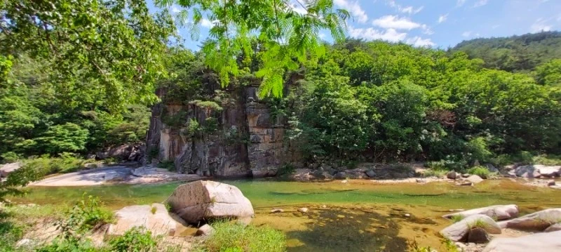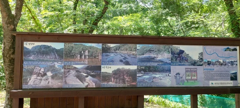 화양 제 1곡 경천벽은 주차장 전에 나오기 때문에 모르고 가면 지나치기 쉽다. 나도 주차장 가는 길에 오른쪽으로 멋진 절경이 펼쳐져서 눈을 크게 뜨고 봤으나, 쓰윽 지나쳐버려서 나중에 돌아오는길에 일부러 데크를 걸어내려와 경천벽을 따로 봐야했다. 화양1곡인 경천벽만 탐방지원센터 아래 있으니, 이 점 유의하시길!