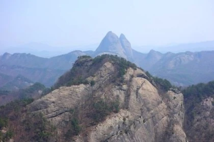 마이산이 가깝게 잘 보이는 곳으로 진안 마령면 강정리의 합미산성과 광대봉을 사람들이 많이 꼽는데요, 합미산성은 마이산의 서쪽으로 뻗은 산줄기 능선을 따라 축성된 삼국시대의 포곡식 석성이랍니다.