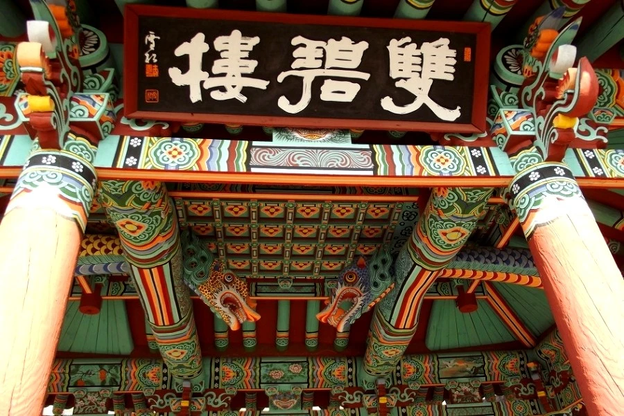 자료를 찾아보니 쌍벽루의 편액에 대한 설명이 자세히 나와있더라구요. 쌍벽루 중앙에 걸린 편액은 설송 최규상이 예서로 쓴 것으로, 아마도 설송의 작품 중에서 대표작이라고 해도 손색이 없는 작품이라고 해요. 얼핏 멀리서 보면 추사 김정희가 쓴 글씨로 착각할 정도로 조형미와 예술성이 뛰어나답니다. 이 편액을 쓴 설송은 김제 진봉 출신으로 석정 이정직 문하에서 글씨를 익혀, 오체를 두루 섭렵했지만 특히 전각과 전서가 뛰어났다고 해요. 그의 작품으로는 많은 전각 작품이 전하여 오고 있으며 전주의 기령단 편액도 그가 쓴 것이라네요.