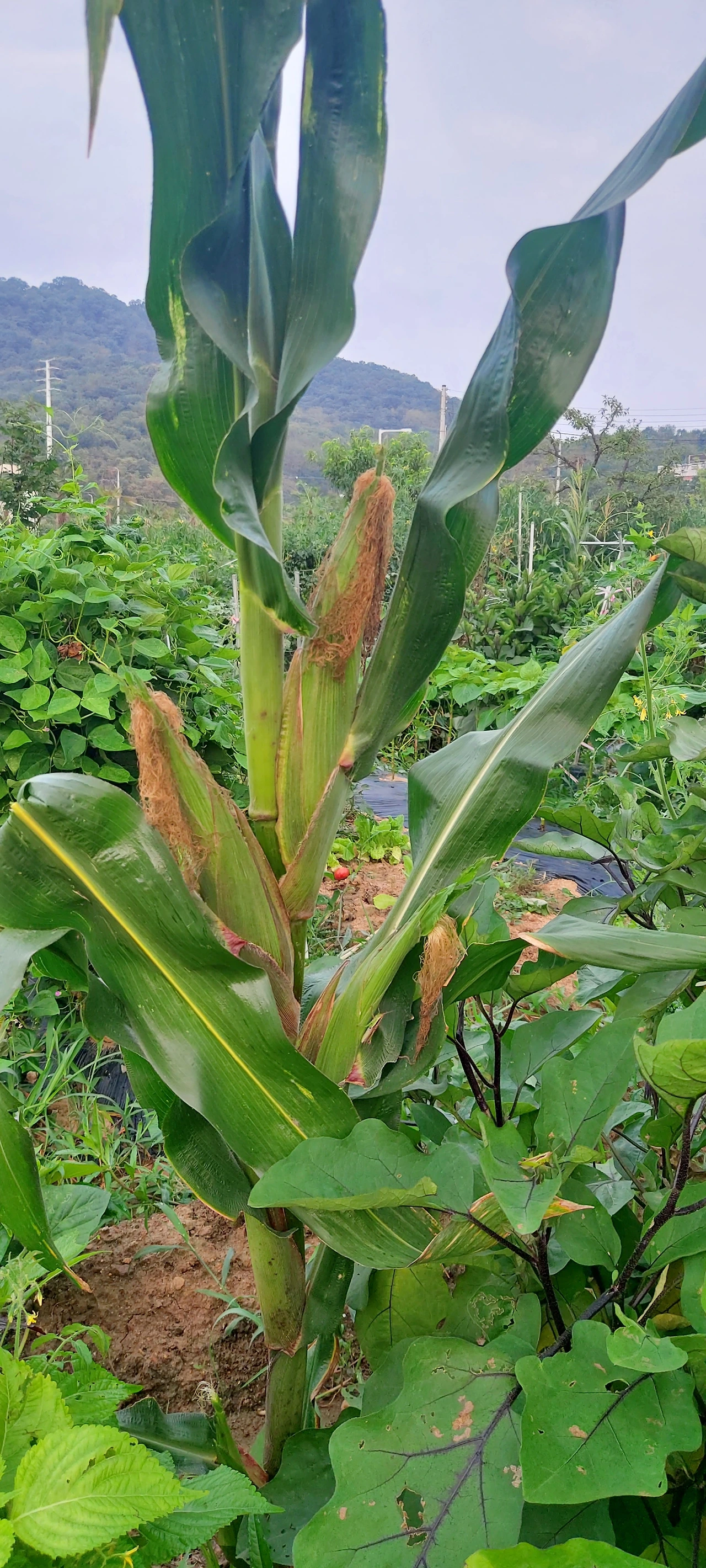 열흘 전에 살폈을 때 네댓 개가 고사했길래, 이웃밭에서 다시 얻어 심었는데 다행히 잘 자라고 있었다. 무엇보다 방울토마토가 어찌나 잘 자랐던지 지주대가 옆으로 누워버릴 정도로 자라서, 빨갛게 익은 방토부터 따고, 깻잎도 따고, 웃자라버린 상추들은 다 뽑아냈다. 저 혼자 자란 옥수수는 아직 알이 다 차지 않은 상태라 더 키워서 따먹어야겠고, 가지는 잦은 비에 꽃을 못 피워서 두 개밖에 수확을 못했다.