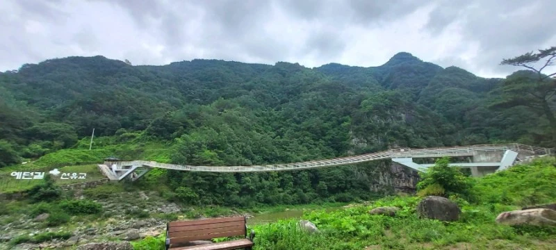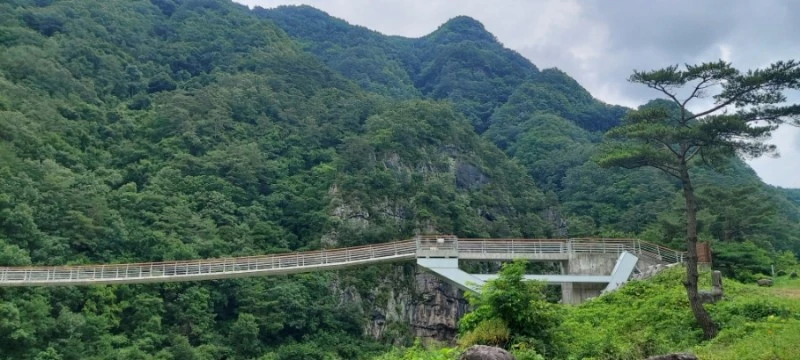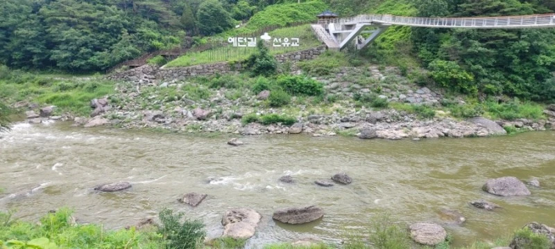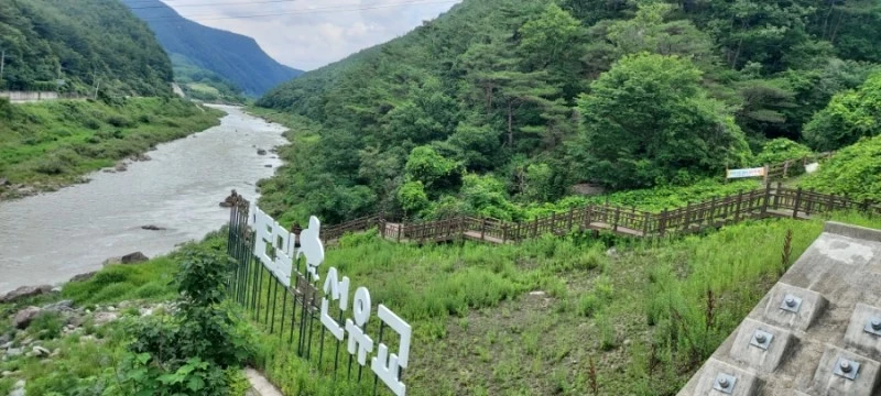 다음 행선지인 명호출렁다리로 이동하느라 아쉬운 마음을 안고 떠나야했지만, 정자도 있고 데크길도 있고 다른 지역보다 10도 가까이 낮은 선선한 기온이라 더위를 피하며 즐기기 참 좋은 곳이었답니다.