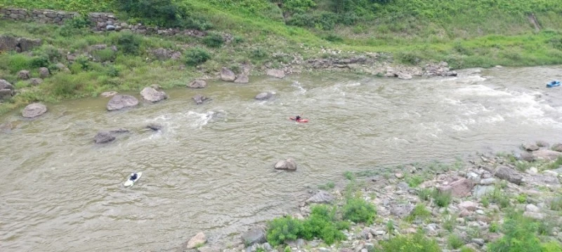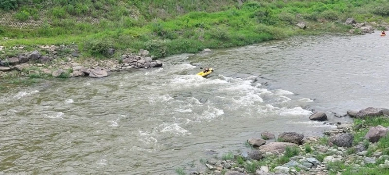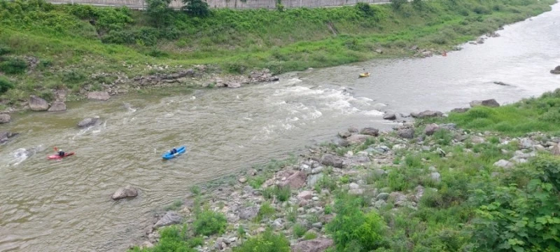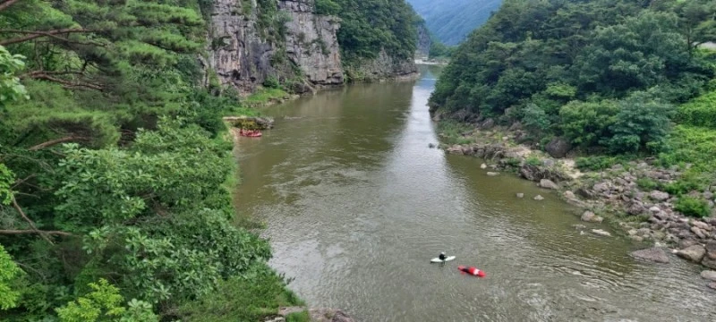 둘째는 낙동강의 물결을 타고 넘는 래프팅하는 사람들이랍니다. 다리 위라 제법 멀리 떨어져서 보는데도 아주 볼만 했답니다. 직접 타지 않고 보는 것만으로도 시원할 수가 있구나 싶었어요. 특히 카약하는 사람들이 일부러 뒤집어서 물에 빠졌다가 다시 올라오는 모습이 무지 재밌었어요.