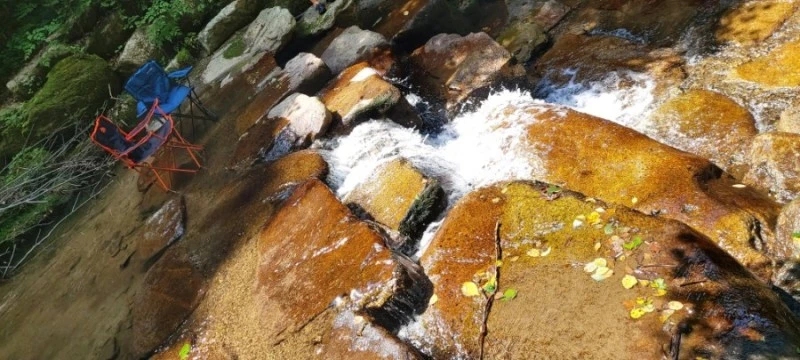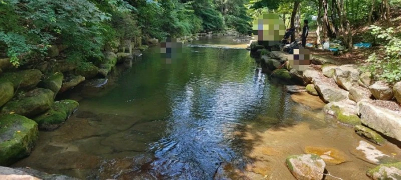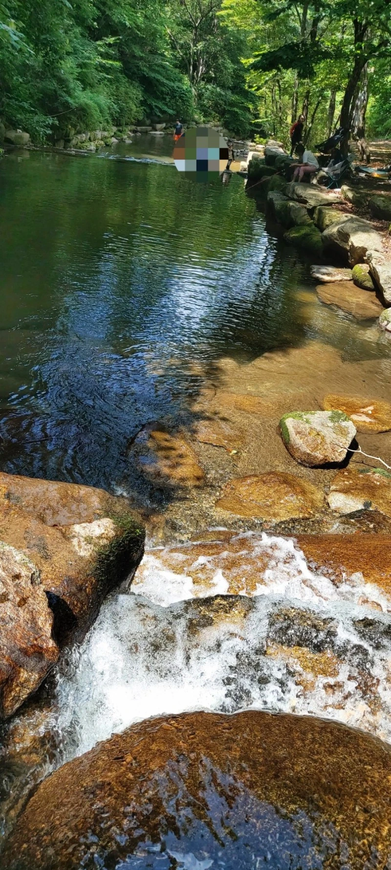 우리가 놀았던 곳은 간이화장실도 마련되어 있고, 사람들이 많이 찾지 않아 길가에 주차를 하고, 걷기 편한 오솔길을 따라 계곡으로 내려가서 바로 물놀이를 할 수 있다.(길에서 계곡까지 30초!) 계곡 옆에는 제법 널찍하고 평평한 땅이 있어서, 원래부터 이쪽을 잘 알았던 사람들인지 텐트까지 쳐놓고 물놀이에, 낚시에, 흥겹게 노는 가족들이 있었다.