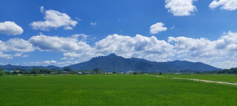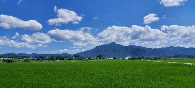 월출산 아래 초록논이 펼쳐진 풍경과 멀리 풍력단지에서 돌아가는 바람개비, 시조부모님께서 땅을 기증하셔서 만드셨다는 청운교회 등을 둘러보고 나왔다. 한창 더운 시간이라 길에도 들판에도 교회에도 사람이 없어, 고즈넉한 청계마을의 여름 오후를 보낸 셈이다. 그날의 풍경이 너무 이뻐서 올려본다.