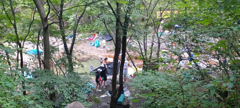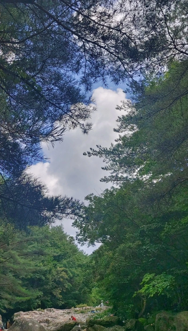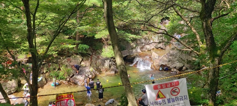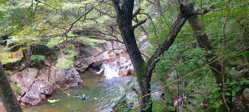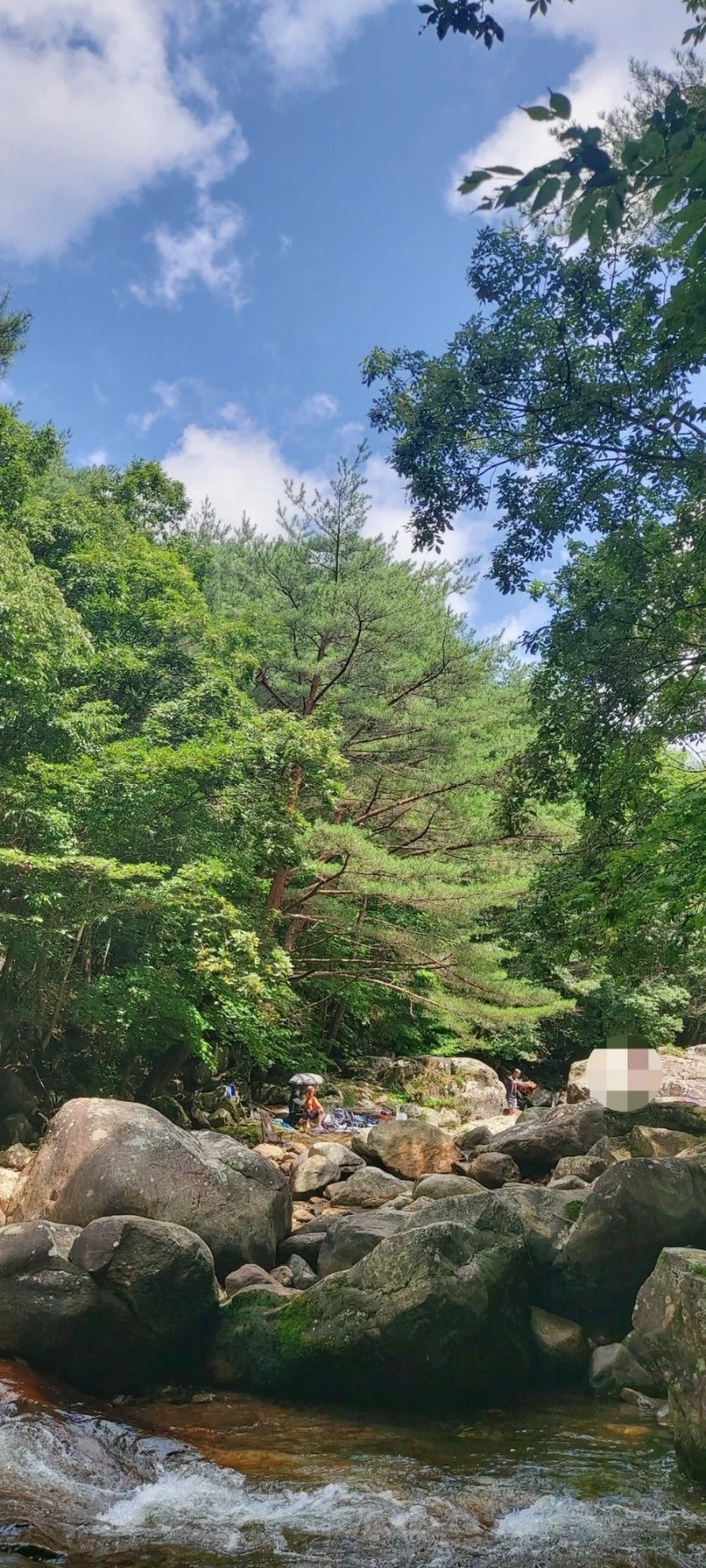 얼음처럼 차가운 수온과 특급수라 해도 좋은 맑은 수질, 발목만 담궈도 좋을 깊이부터 성인 키를 훌쩍 넘어가는 깊은 수심까지, 계곡물놀이로 이만한 곳이 있을까 싶은 선계랍니다. 토옥동 깊은 골짜기에서 흘러내려온 맑은 물에 발이나 몸을 담그고, 초록 나뭇잎 사이로 보이는 파란 하늘을 바라보고 있자면 "신선놀음이란 이런 것이구나~!"하는 말이 절로 나오지요.
