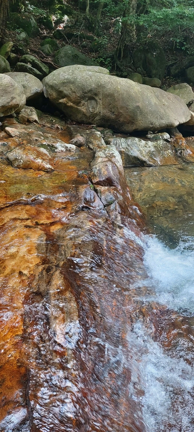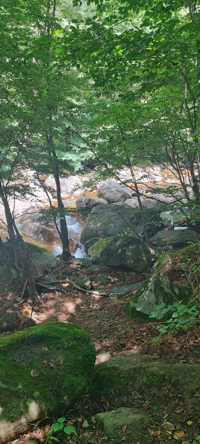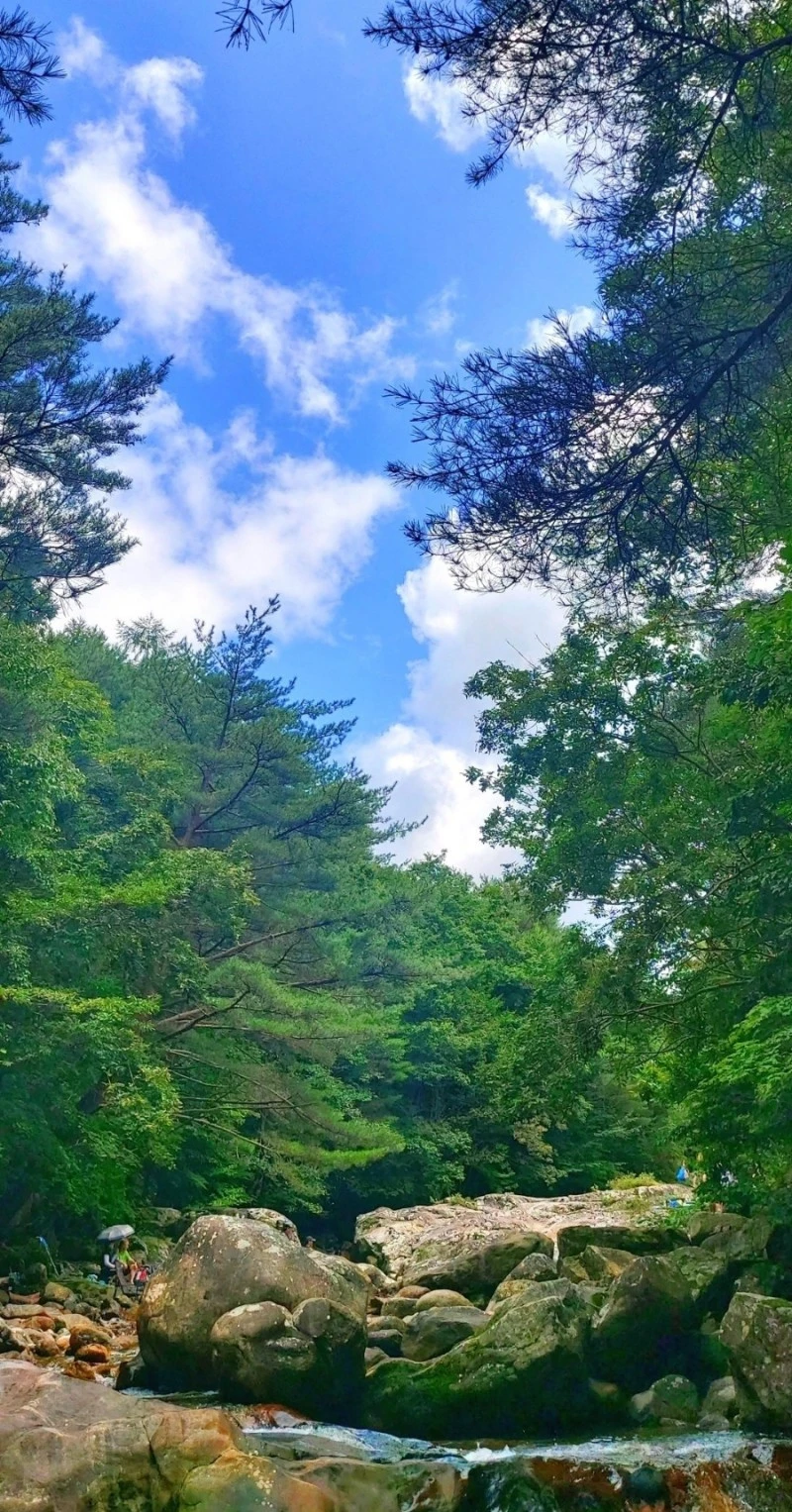 얼음처럼 차가운 수온과 특급수라 해도 좋은 맑은 수질, 발목만 담궈도 좋을 깊이부터 성인 키를 훌쩍 넘어가는 깊은 수심까지, 계곡물놀이로 이만한 곳이 있을까 싶은 선계랍니다. 토옥동 깊은 골짜기에서 흘러내려온 맑은 물에 발이나 몸을 담그고, 초록 나뭇잎 사이로 보이는 파란 하늘을 바라보고 있자면 "신선놀음이란 이런 것이구나~!"하는 말이 절로 나오지요.