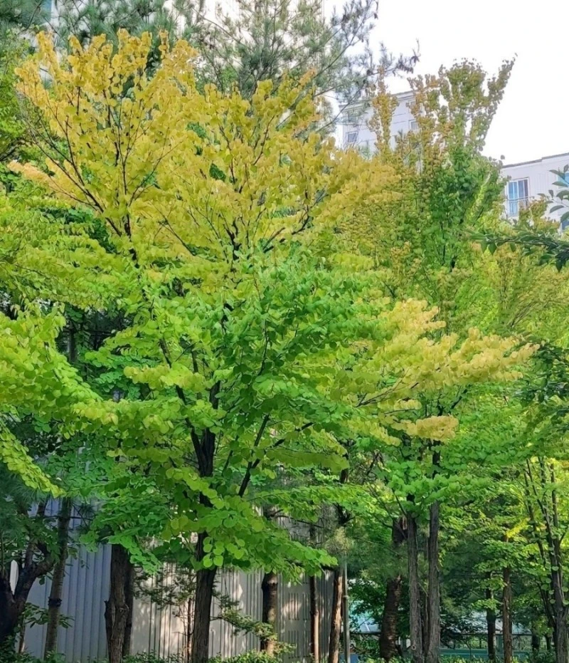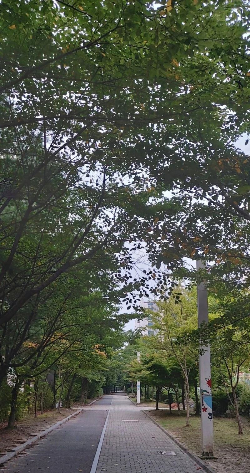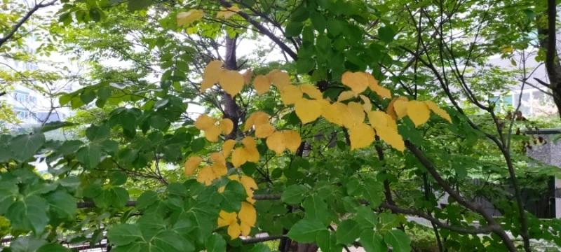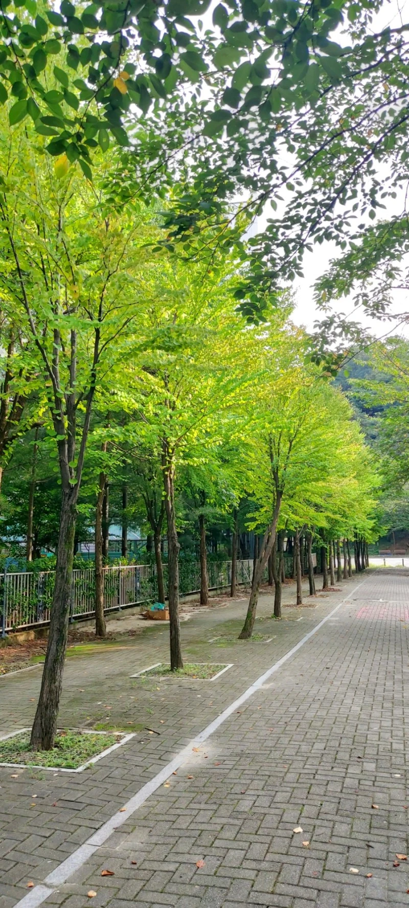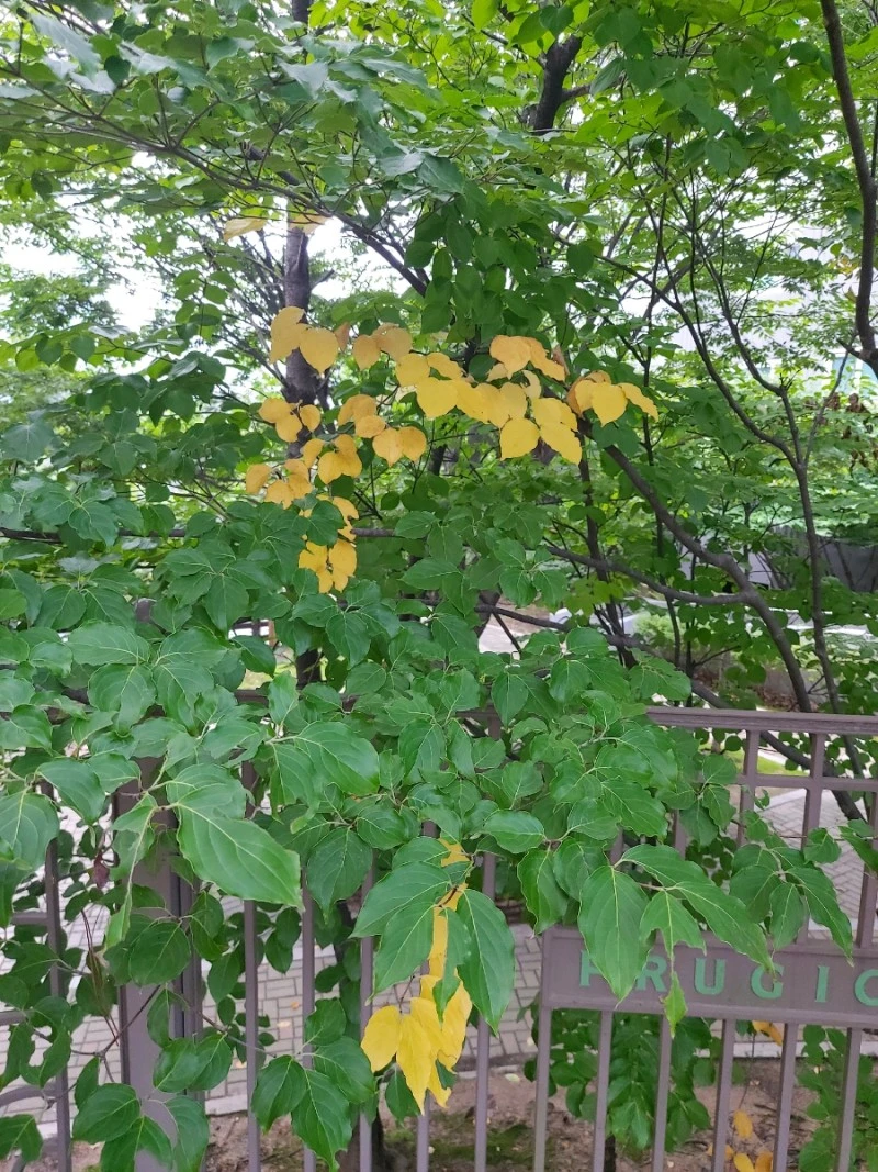 계수나무, 단풍나무는 우듬지부터 노랗게 붉게 물들면서 초록빛이 가시기 시작하고, 벚나무는 노랑 잎이 바닥에 떨어져 있었다.