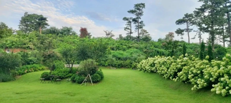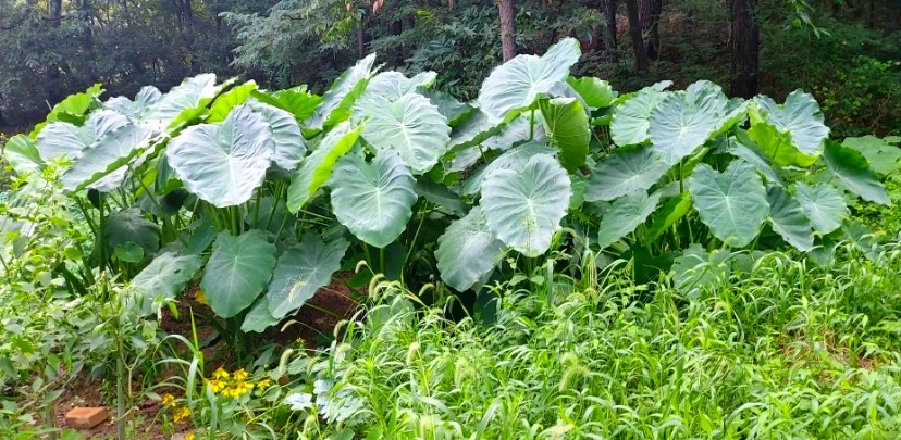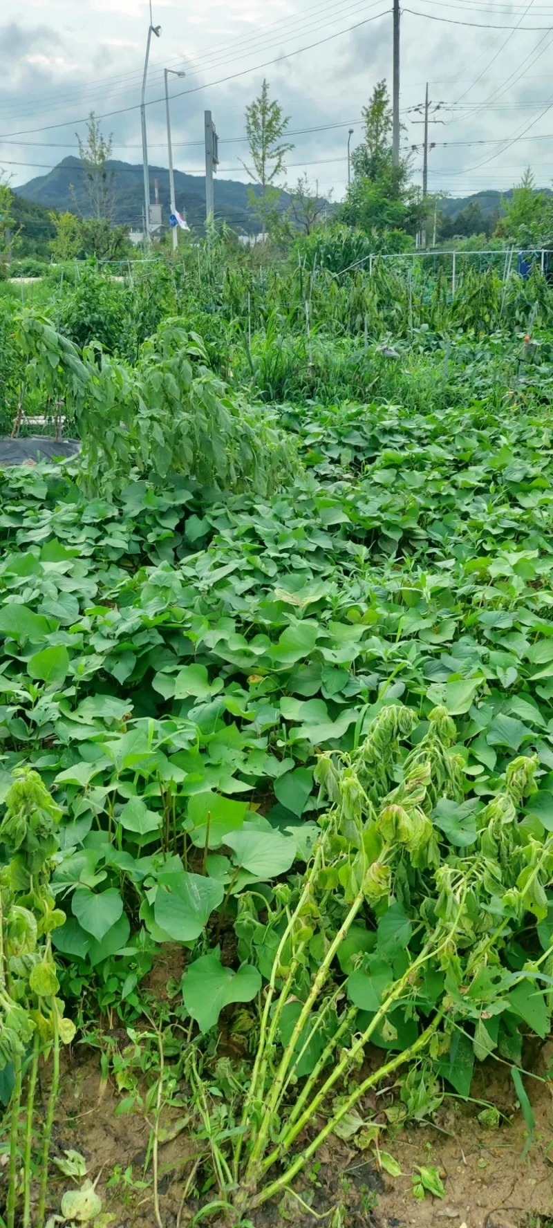 텃밭 가는 길의 소나무숲길, 동이 터오는 하늘, 비 속에서도 장하게 자라주는 참외, 호박, 가지, 애호박, 빨강고추, 초록고추, 고구마순 가득한 밭들과 이삭이 패이기 시작한 논, 묵마을 담장 밖에 떨어진 채 익어가는 꼬마감과 울밖의 봉숭아꽃, 프로농부의 손길이 스며있는 밭들과 사람 키보다 더 크게 자란 토란대, 카페에서 정성스레 다듬은 정원과 여전히 풍경사진관을 지키는 멍뭉이, 언제나 그자리에서 하늘을 향해 꼿꼿하게 서있는 측백나무의 모습이 마음을 다독여주네요~^^
