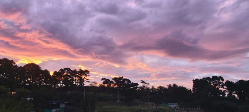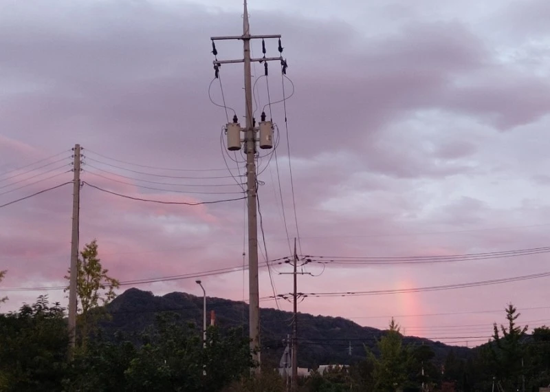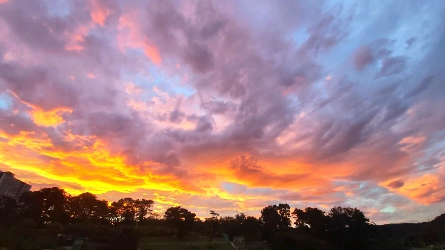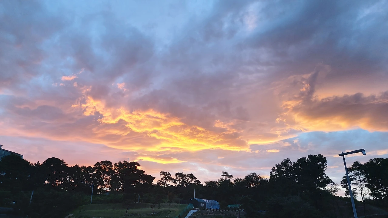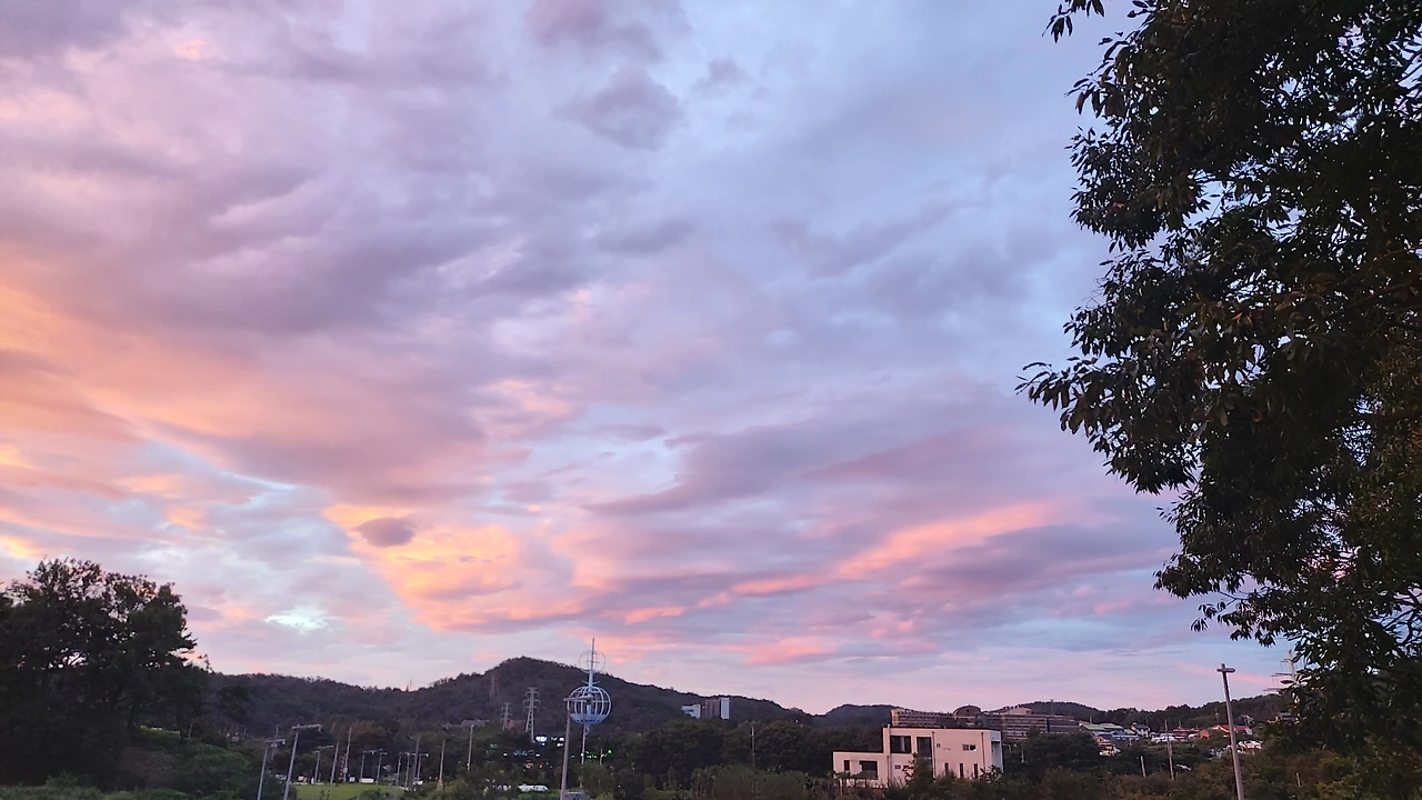 그 찰나의 순간을 카메라에 담을 수 있음에 감사하며, 새벽의 마법이 선사한 아름다운 텃밭 하늘을 올려본다. 동녘하늘이 이렇게 마법을 부리는 동안 서녘하늘에선 아침무지개가 떠있었다. 뒤늦게 발견해 끝자락만 조금 담을 수밖에 없어 아쉬웠다. 새벽의 마법이 진행될 때는 시선을 한곳에만 고정하지 말고, 360도 돌려가며 구석구석 살펴야겠다는 생각도 들었다.