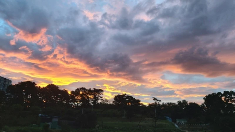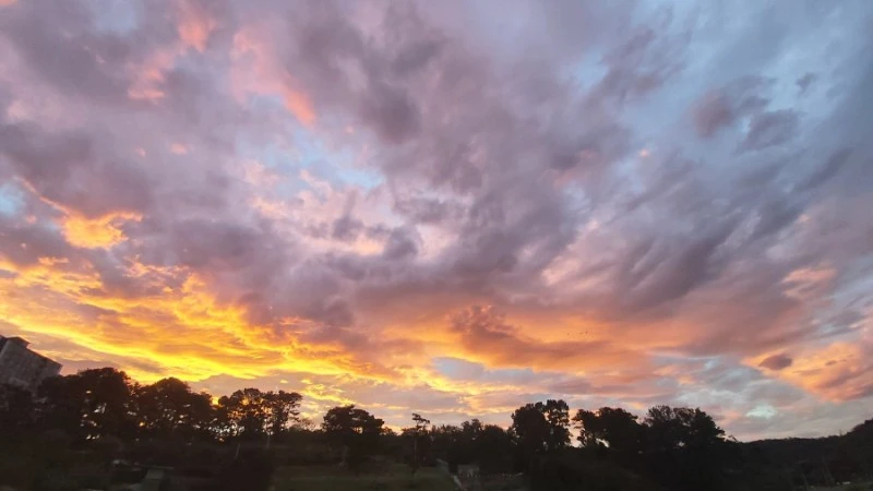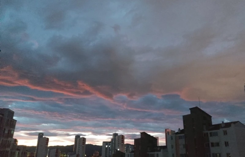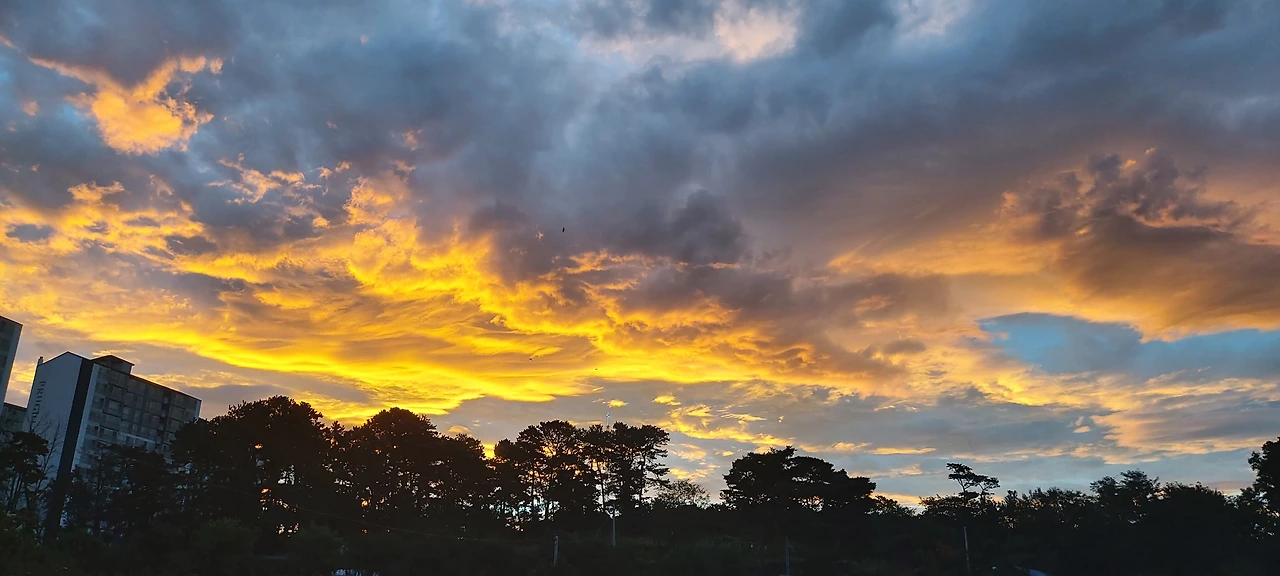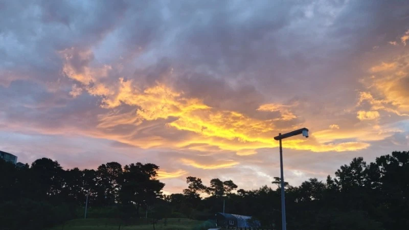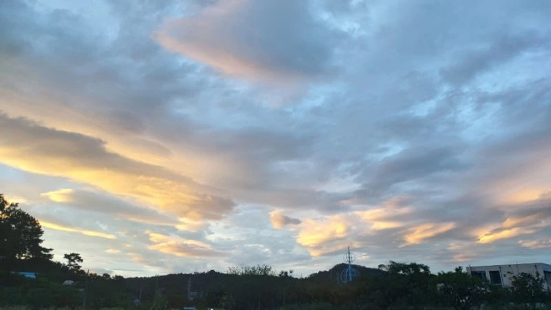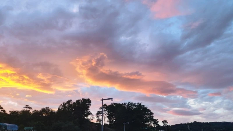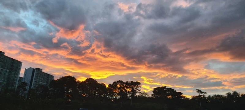 그 찰나의 순간을 카메라에 담을 수 있음에 감사하며, 새벽의 마법이 선사한 아름다운 텃밭 하늘을 올려본다. 동녘하늘이 이렇게 마법을 부리는 동안 서녘하늘에선 아침무지개가 떠있었다. 뒤늦게 발견해 끝자락만 조금 담을 수밖에 없어 아쉬웠다. 새벽의 마법이 진행될 때는 시선을 한곳에만 고정하지 말고, 360도 돌려가며 구석구석 살펴야겠다는 생각도 들었다.