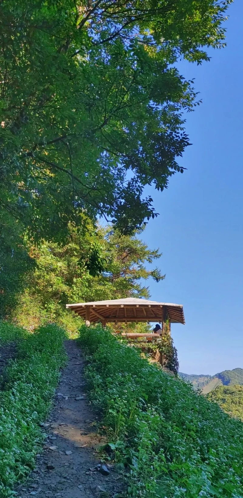 이 정자 오르는 길이 두 가지인데, 정자로 바로 올라오는 급경사 코스(자꾸 미끄러지니 조심) 정자를 오른쪽으로 끼고 빙 돌아서 올라가는 길이 있어요. 어쨌든 둘 다 한참을 걸어야 하는데, 정자에 있는 의자에 앉아 쉬면서 내려다보는 메밀밭 풍경도 멋지니까 여기도 꼭 가보세요~. 사람들이 올라오기 힘들어서 그런지 여기까진 많이 안 오셔서 나름 고즈넉하게 풍경감상을 할 수 있어 좋았어요.