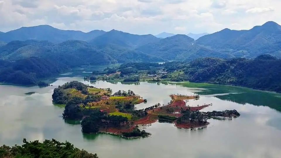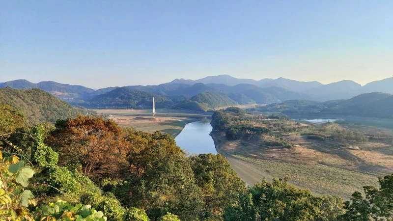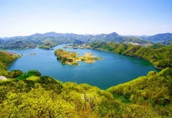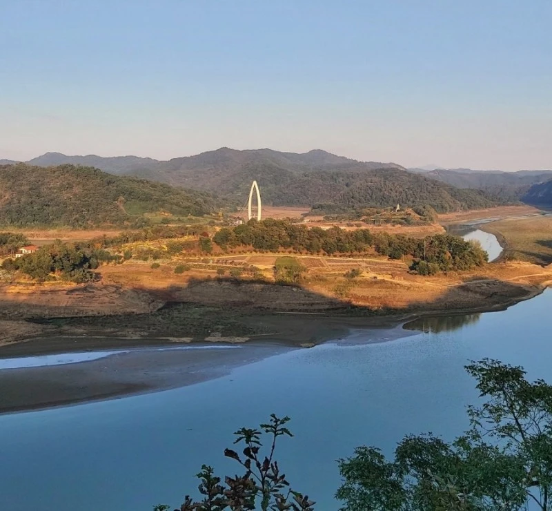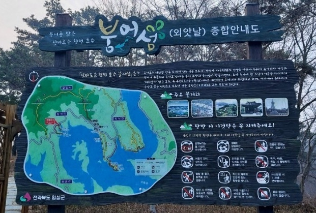 붕어섬은 원래 이름은 '외앗날'이지만 국사봉 전망대에서 바라보면 섬의 모양이 마치 붕어를 닮았다고해서 사진작가들이 외앗날에 붙여준 이름이에요.(저는 외앗날이란 이름이 더 마음에 드네요) 외앗날은 봄이면 천지를 뒤흔들며 꿈틀거리고, 여름이면 녹음방초로 뒤덮이고, 가을이면 알록달록 단풍으로 꾸며지고, 겨울이면 수묵화 같은 한 점의 그림으로 떠 있는 섬이에요.