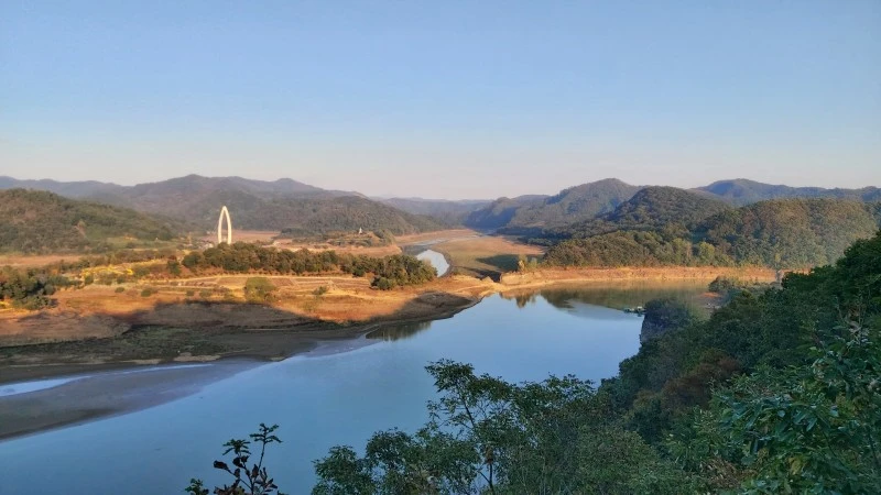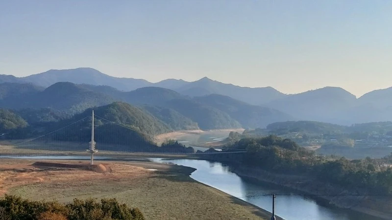 이 붕어섬에 길이 420m, 폭 1.5m의 출렁다리가 완공되어 10월 22일부터 관광객에게 개방된다고 해요. 2022년 2월에 붕어섬을 코앞에 둔 양요정이 있는 요산공원을 방문했을 때, 공원과 붕어섬을 잇는 공사를 하고 있더라구요. 알고 보니, 출렁다리와 짚라인을 만드는 중이었어요. 출렁다리가 이어지면 붕어섬까지 걸어서 갈 수 있어 좋겠구나 하는 기대와 옥정호와 섬진강 생태계에 악영향을 미치지 않을까 하는 걱정이 동시에 들었어요.