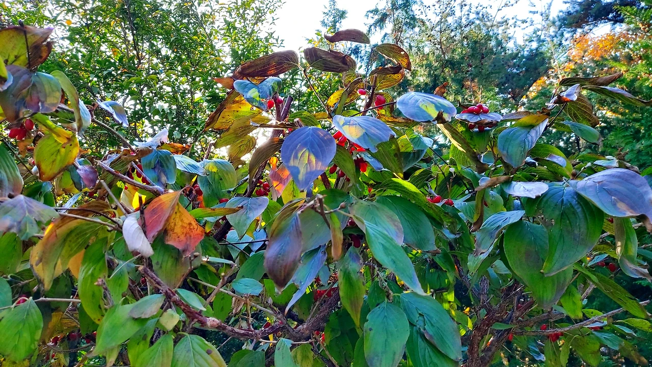 "보리수열매는요~ 6월에 빨갛게 익었다 떨어졌고요, 저 붉은 열매는 산수유랍니다." 그 아즈마이를 붙잡고 세상 친절하게 알려주고 싶었으나,