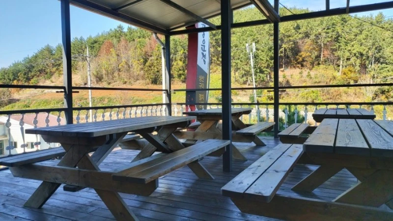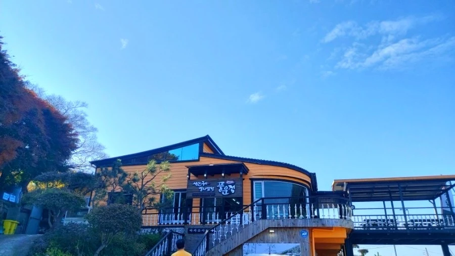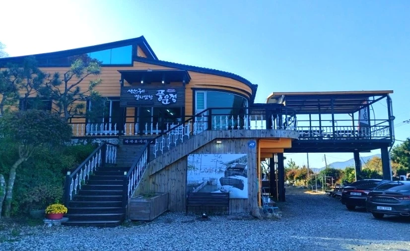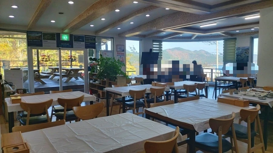 도착해보니, 작은 산아래 자리잡은 풍운정은 뷰도 남다르게 좋더라구요. 식당 양쪽으로 남해바다가 멀리 보여서 식사하며 바다를 볼 수 있는 뷰맛집이기도 했어요. 주차는 식당 앞 너른 주차장에 하면 된답니다.