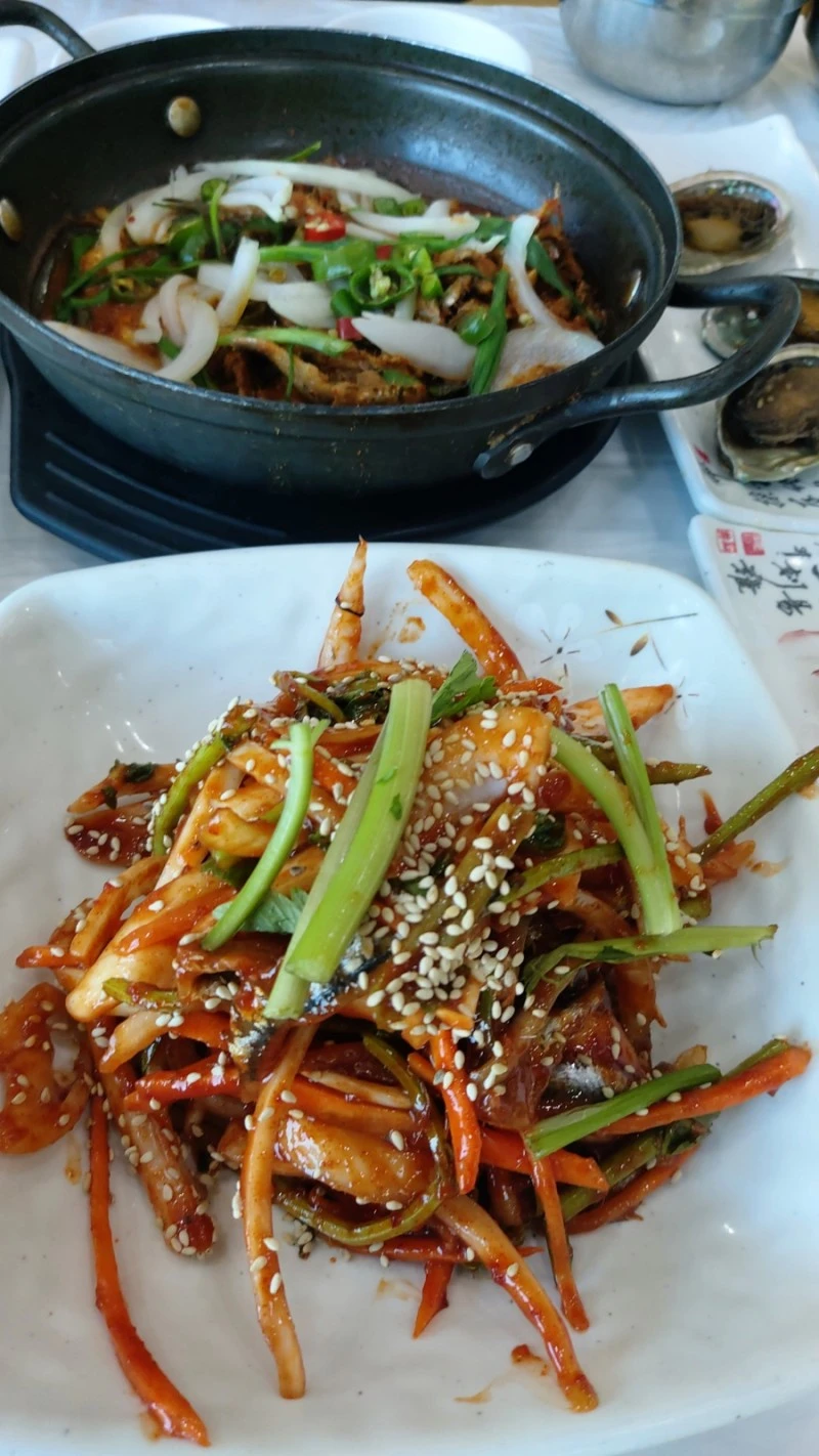 멸치쌈밥은 전혀 비리지 않고 구수한 맛이 느껴지게 잘 양념되어 익혀졌고, 멸치회도 새콤달콤 맛있어서 이렇게 하나도 안 비리게 음식을 하시는 비법이 궁금해질 정도였어요. 남해에 자주 왔어도 사실 멸치쌈밥은 비릴까봐 그간 안 먹었는데, 풍운정은 원조 멸치쌈밥집이라 전혀 비리지 않으니 꼭 먹어보라고 하신 현지인의 말씀이 맞더라구요.