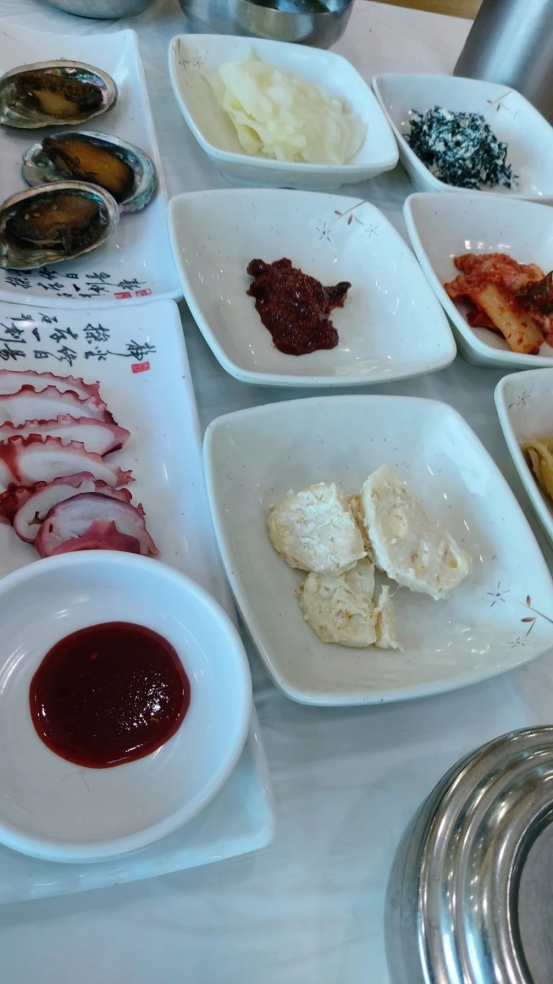 곁들여져 나온 전복장, 문어숙회, 연근무침, 표고버섯나물, 달걀찜, 전어젓갈, 어묵볶음, 양배추찜, 파래무침, 톳나물, 김치 등의 반찬도 하나하나 정말 맛이 좋았어요.