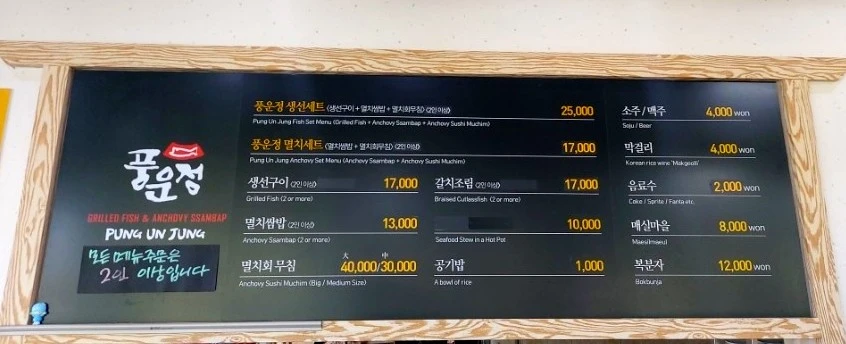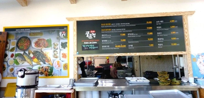 남해 하면 멸치쌈밥이 유명해서 멸치회랑 생선구이까지 나오는 풍운정생선구이세트로 3인분을 시키고 기다렸어요. 피크타임을 넘겼다곤 해도, 식당안에는 손님들이 꽤 많아서 기다리는 동안 식당 안을 둘러보았답니다.