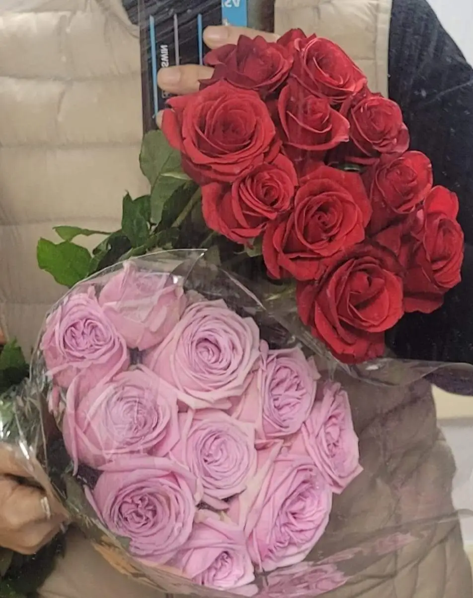 "00아♡♡♡ 이렇게 예쁘고 많은 장미꽃을 받는 것 난생처음이야~ 너무너무 고맙고 감동받았어ㅠㅠ 추우니까 어서 돌아와♡♡"