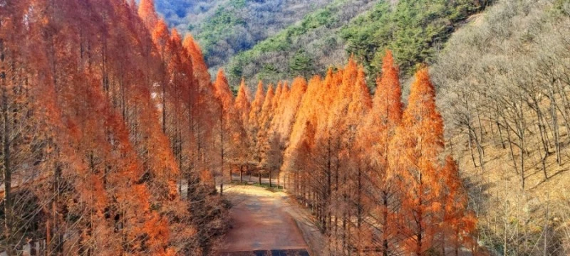 국내 유일의 메타세쿼이아 숲이 울창하게 형성되어 있어 이국적 정취를 느낄 수 있는 대전 팔경 중 하나이자, 대전관광명소 12선 중 하나로 이름을 올린 장태산자연휴양림.