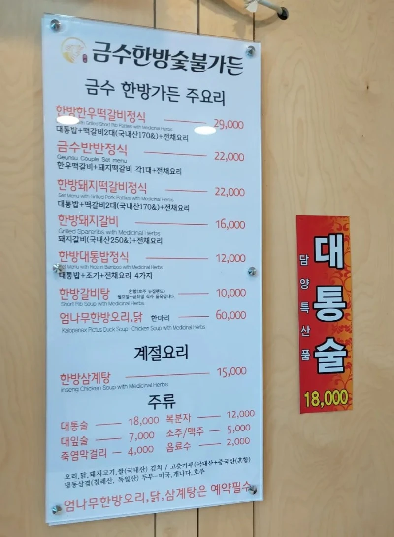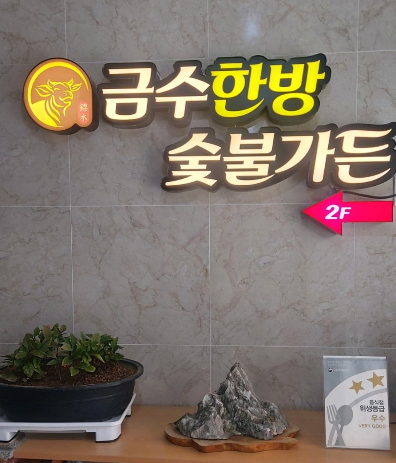 담양은 떡갈비와 대통밥으로 유명한 곳인데 그동안 담양을 여러 번 갔지만 정작 이 두 가지 음식은 먹어본 적이 없더라구요. 검색끝에 블로그 리뷰가 무려 천 개가 넘고, 식약처 인증 위생등급 우수음식점이라는 '금수한방숯불가든'으로 정했어요.