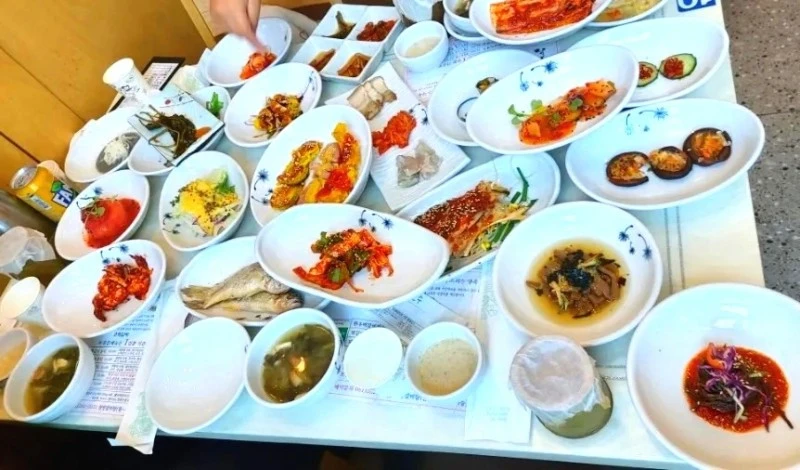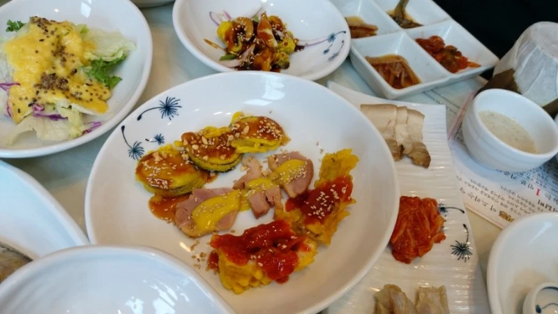 5분 가량 기다리니, 음식이 나오기 시작했어요. 우와~ 근데 식탁에 놔둘 곳이 없을 정도로 음식이 많아서 접시를 포개서 놓아야 할 정도였어요. 도대체 몇 가지야? 하고 세어보니 무려 25가지!!! 역시 전라도는 클라스가 다르구나~~ 감탄하면서 먹기 시작했어요.