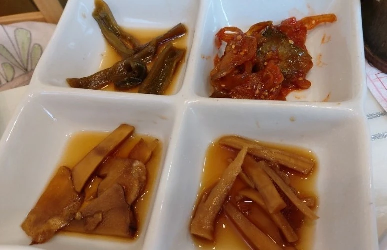 반찬과 장아찌는 추가 시 셀프바를 이용하면 된다고 안내되어 있음에도 식사중에 사장님과 직원분이 번갈아 오셔서 부족한 음식이 있는지 물어보시더라구요. 저희는 입을 모아 말했지요.