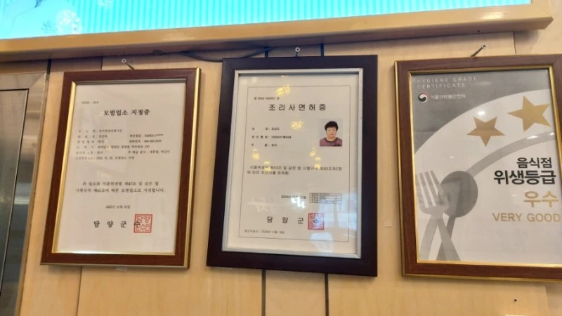 바깥사장님 말씀에 따르면, 주기적으로 대학교수의 컨설팅을 받아서 메뉴개발도 새롭게 하시고 식당영업에 많이 활용하고 있다고 하시더라구요. 올해도 받으실 계획인데 이런 꾸준한 노력이 22년 전통의 떡갈비 담양 찐맛집의 자리를 유지할 수 있도록 해준 것 같았어요.
