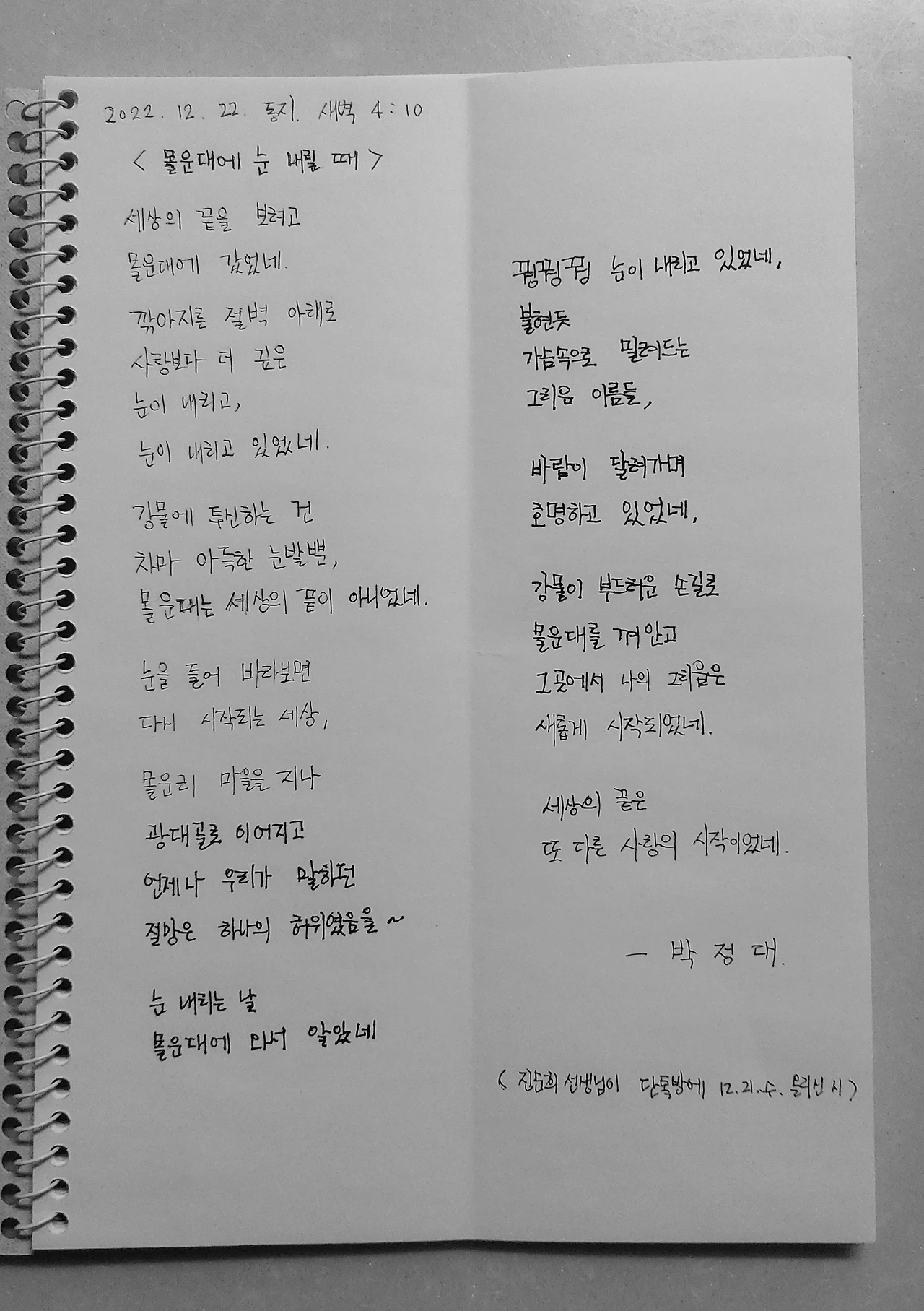 이 새벽 필사를 하며 다시금 시 쓰기를 다짐해본다.