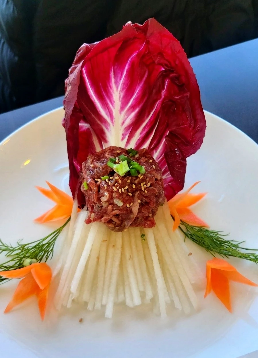 저는 제 눈을 의심했어요. 음식이 한 접시씩 놓일 때마다 식탁에 꽃이 피어나는 거예요! 와~ 어쩜 그리 세심한 손놀림으로 꽃과 나비들을 장식해서 음식에 올리셨는지 보면서 탄성을 질렀네요. 지금껏 봐온 그 어느 식당의 요리들보다 멋드러진 세팅에 눈호강부터 하고, 하나씩 맛을 보는데 하나같이 다 맛있어서 젓가락질을 뭐부터 해야 하나 고민할 정도였어요. 나온 메뉴들 구성은 이렇답니다.