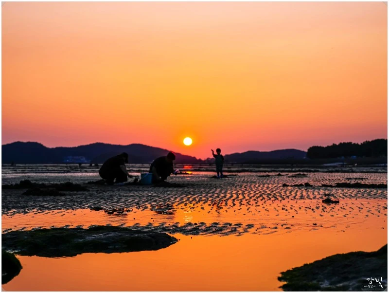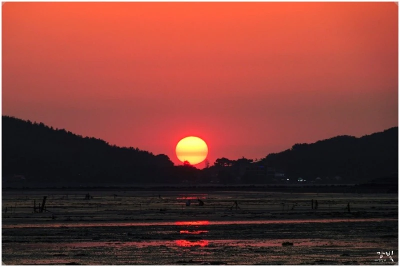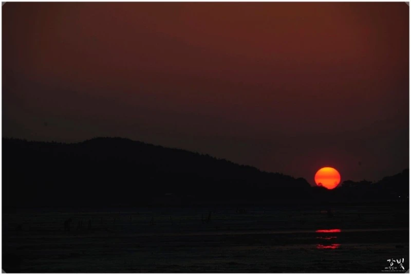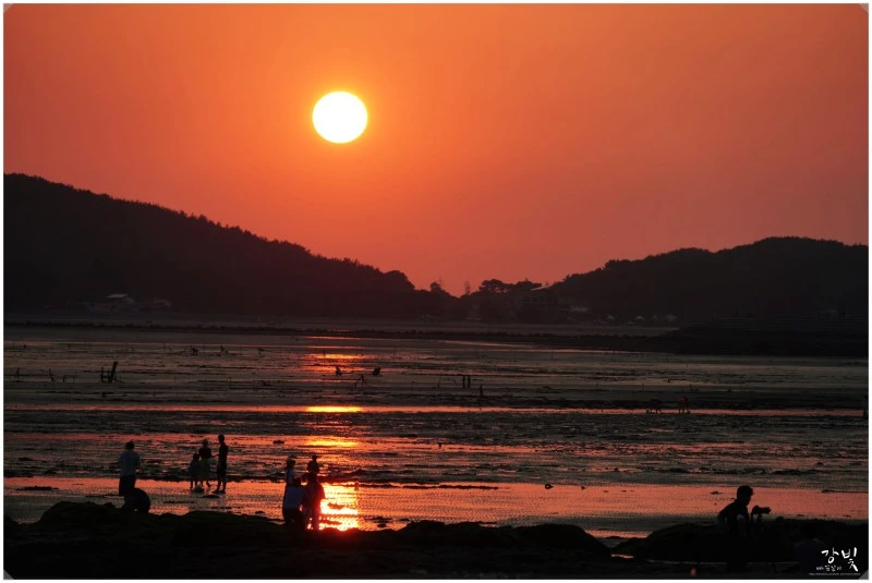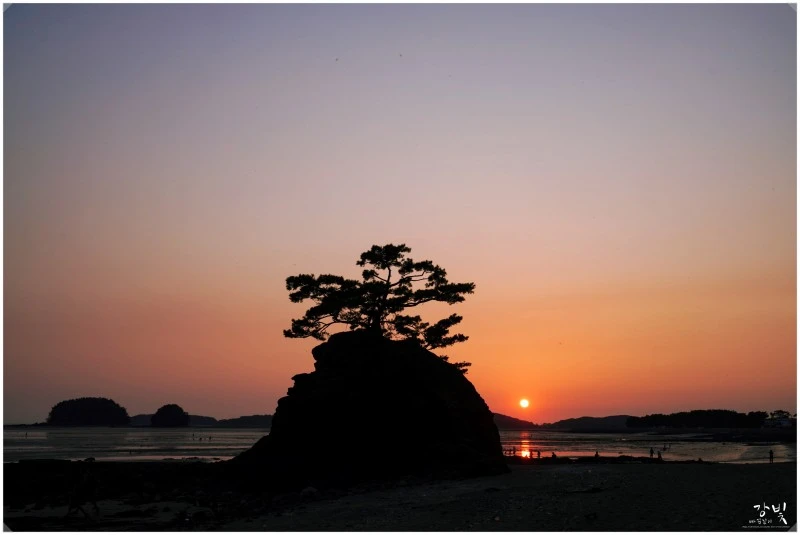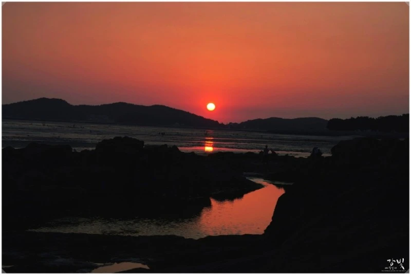 비인해변에 올라서면 제일 먼저 눈에 들어오는 게 할미섬과 쌍도를 품고 넓게 펼쳐진 서해 바다 위로 눈부시게 빛나는 태양이에요. 시간여유가 있다면 일몰 때를 기다렸다 해지는 풍경을 보기에 딱 안성마춤인 곳이지요. 저는 아쉽게도 시간을 못 맞춰서 일몰사진을 못 찍었지만 사진전문가 이웃이신 강빛님의 멋진 일몰사진이 있어 모셔왔어요.(강빛님 사진 감사합니다~ 너부죽^^)
