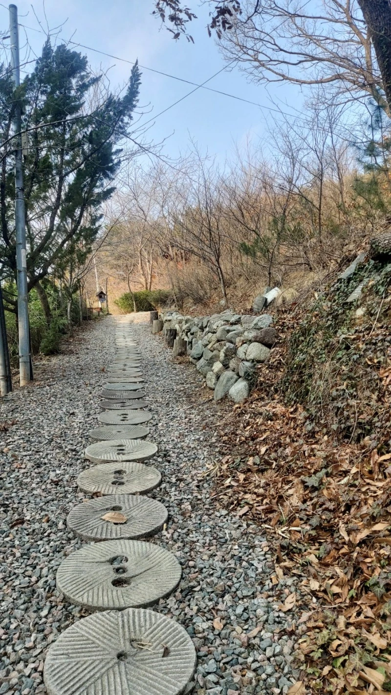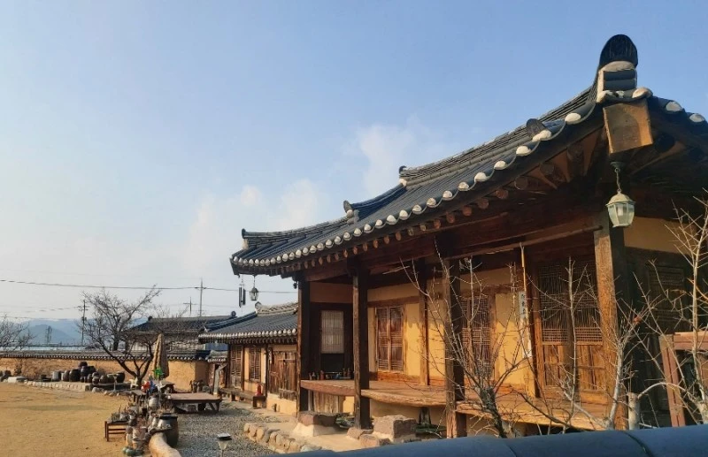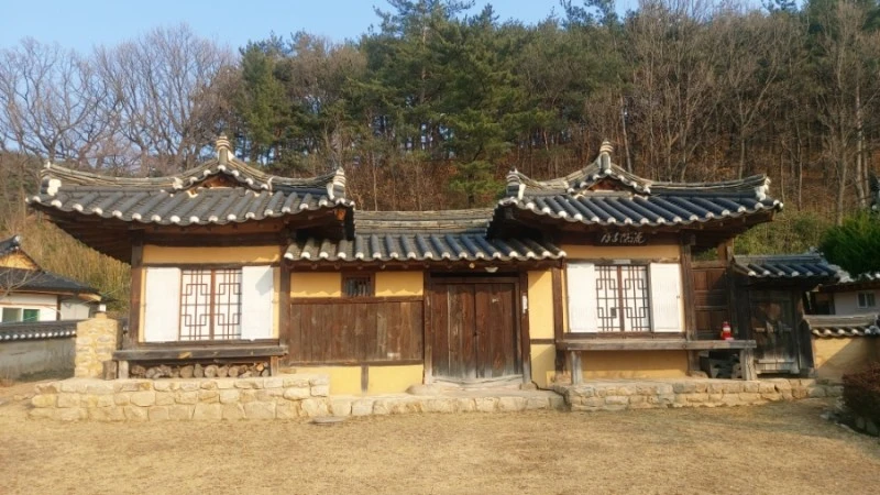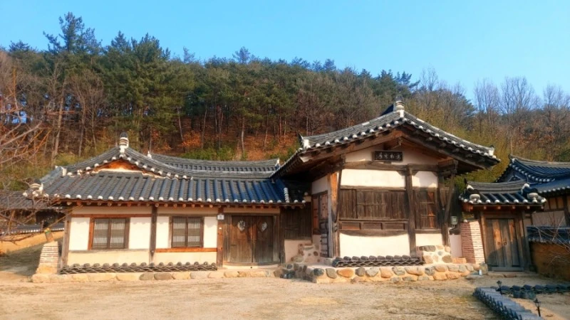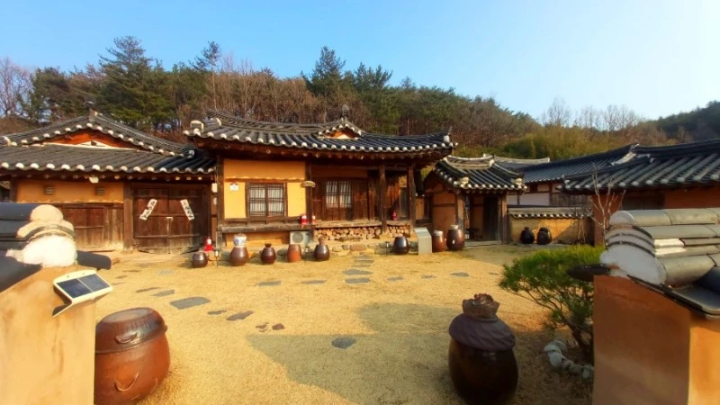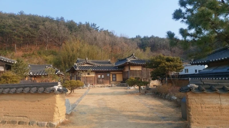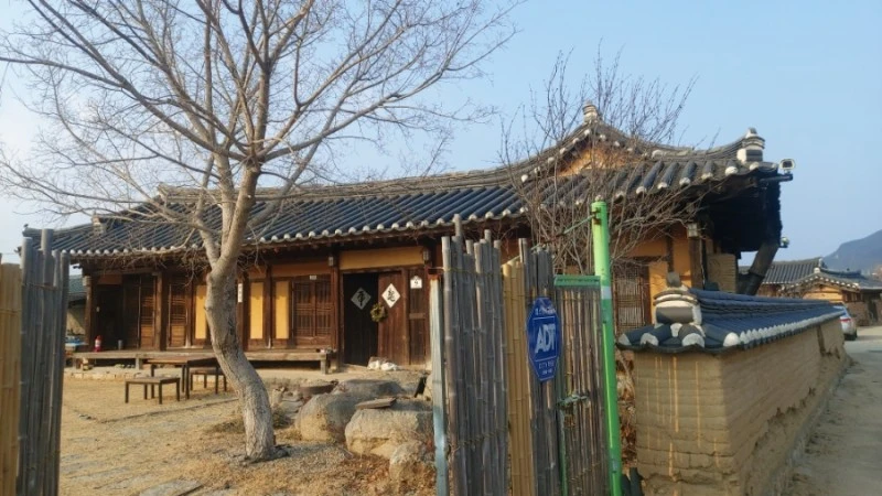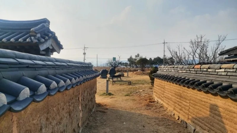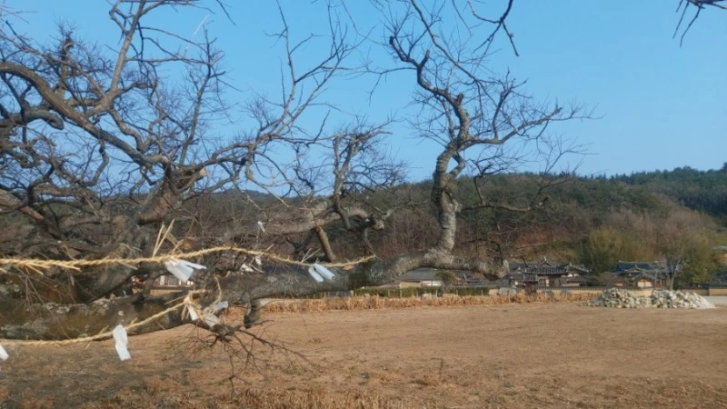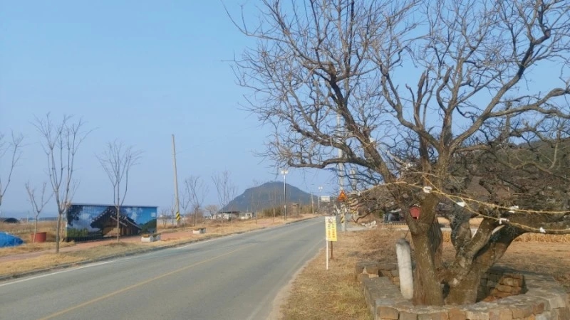 얼마전 정월대보름을 지내며 나무 주위에 새끼줄과 소지가 달려있는 나무를 지나 들어가면 주차장과 마을소개문이 잘 정비된 채 손님들을 맞이하고 있어요.