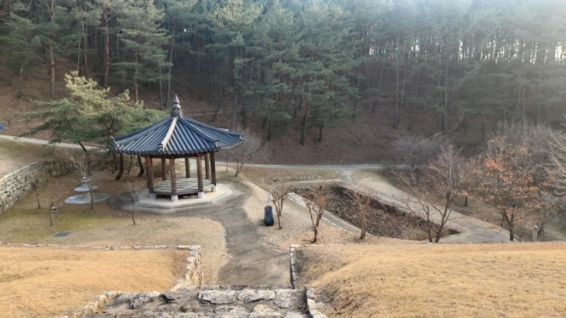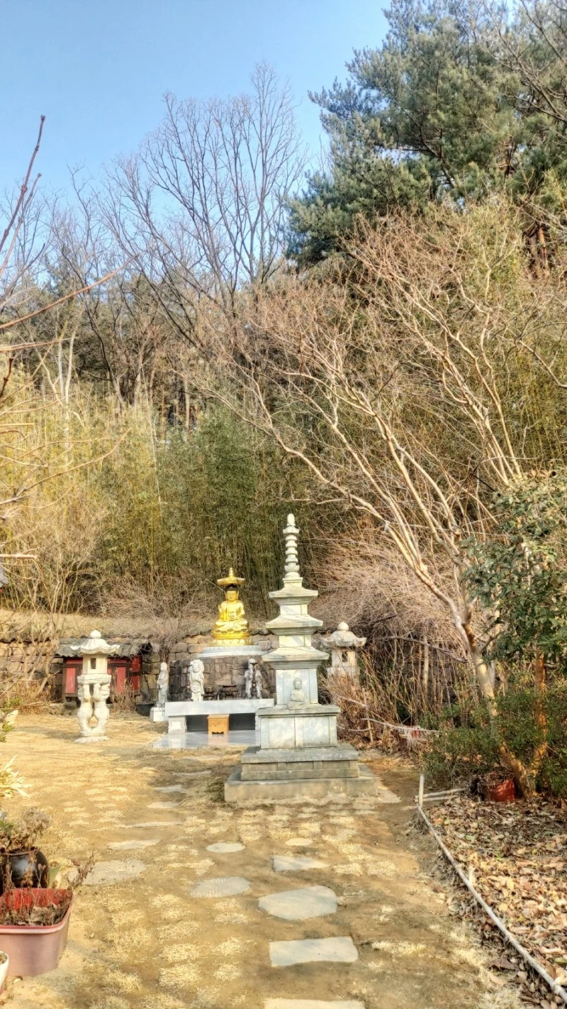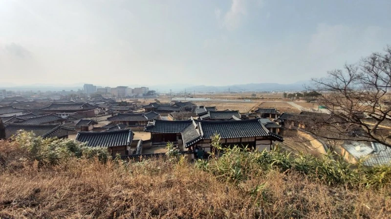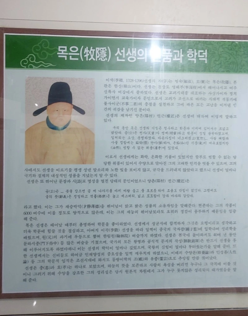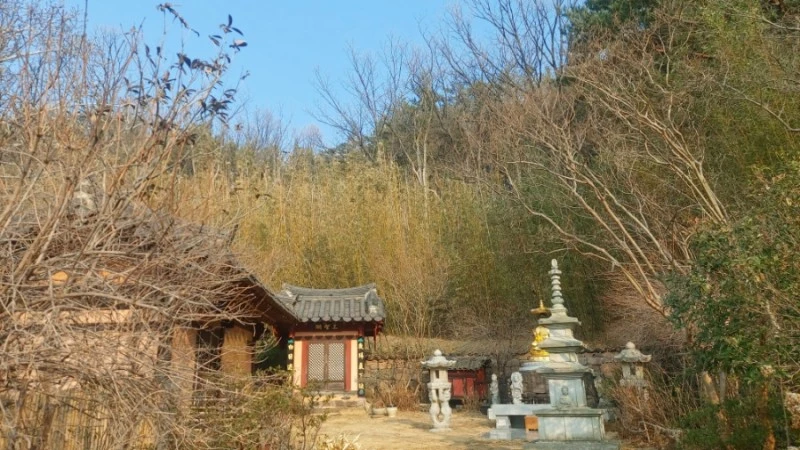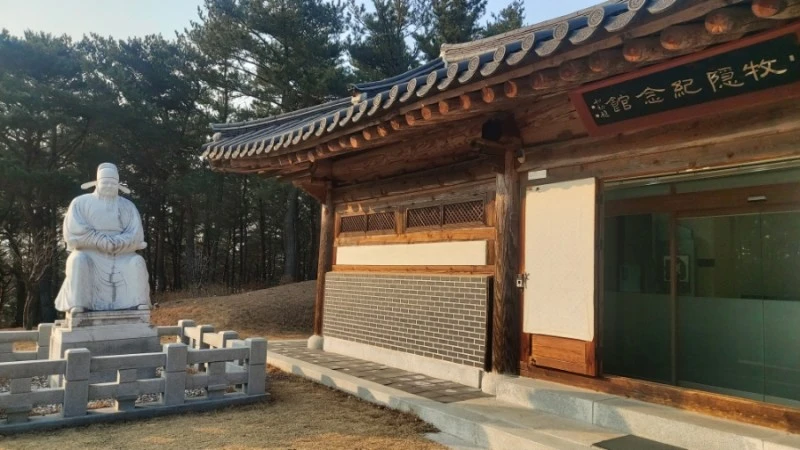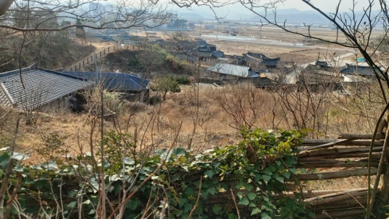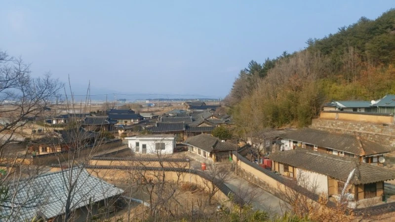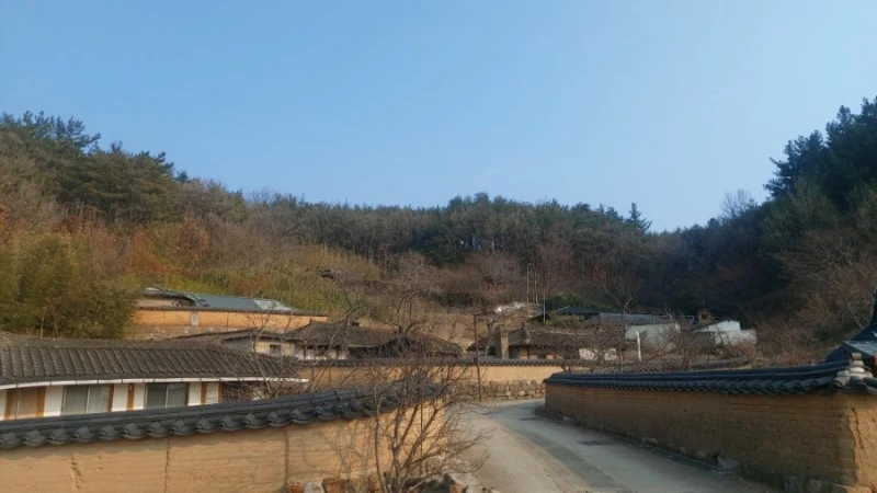 마을 뒤편의 작은 암자 홍련암에서 바라본 마을 전경과 산속에 자리한 목은이색기념관도 볼만하답니다.