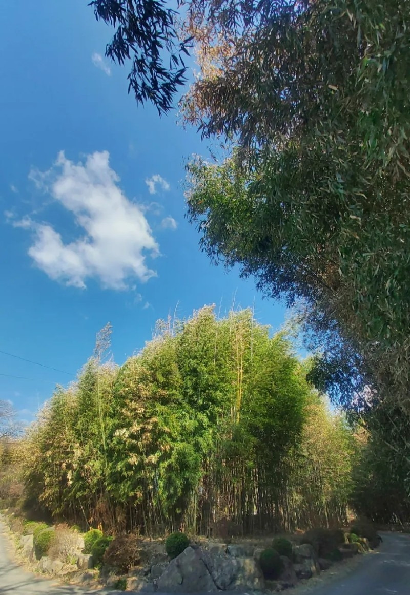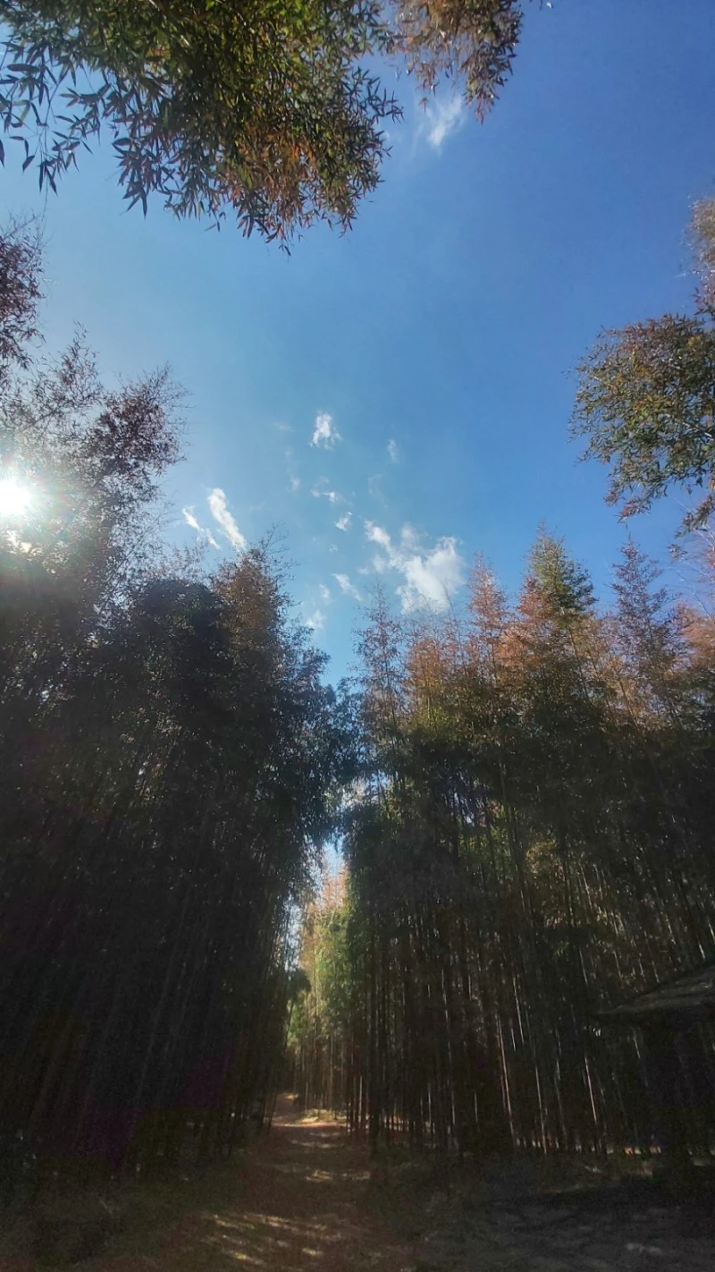한증막이 있던 자리 앞의 너른 빈 공간에 주차하고 대숲 안으로 들어서면 바람따라 물결치는 대나무숲의 고요한 속삭임과 가지 사이사이 서걱이는 댓잎 스치는 소리가 마음을 평안하게 해줘요.