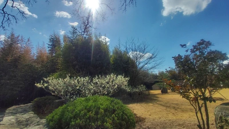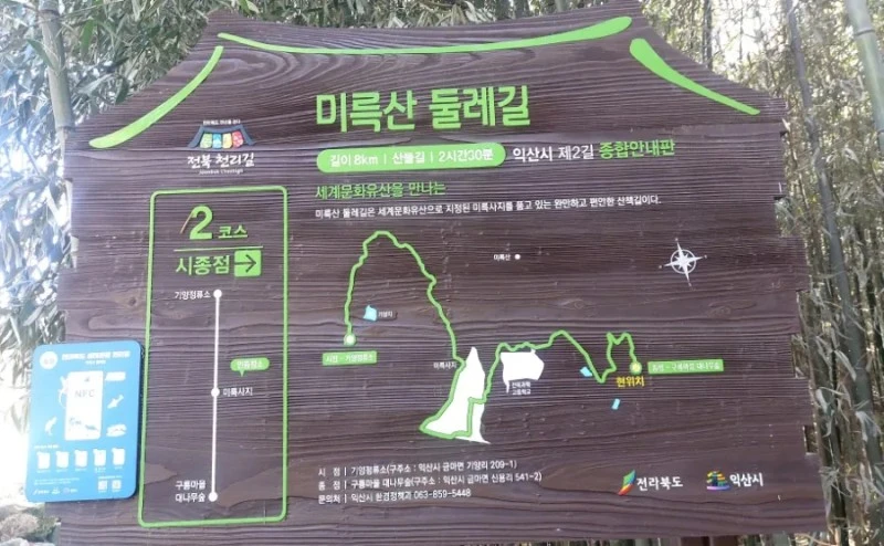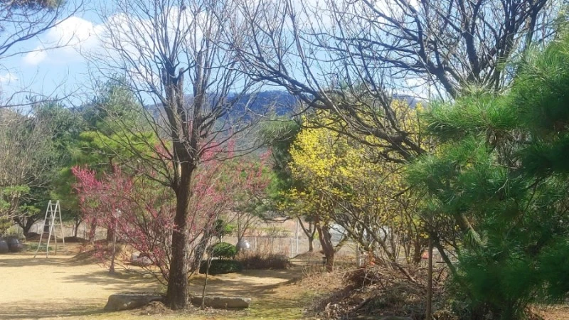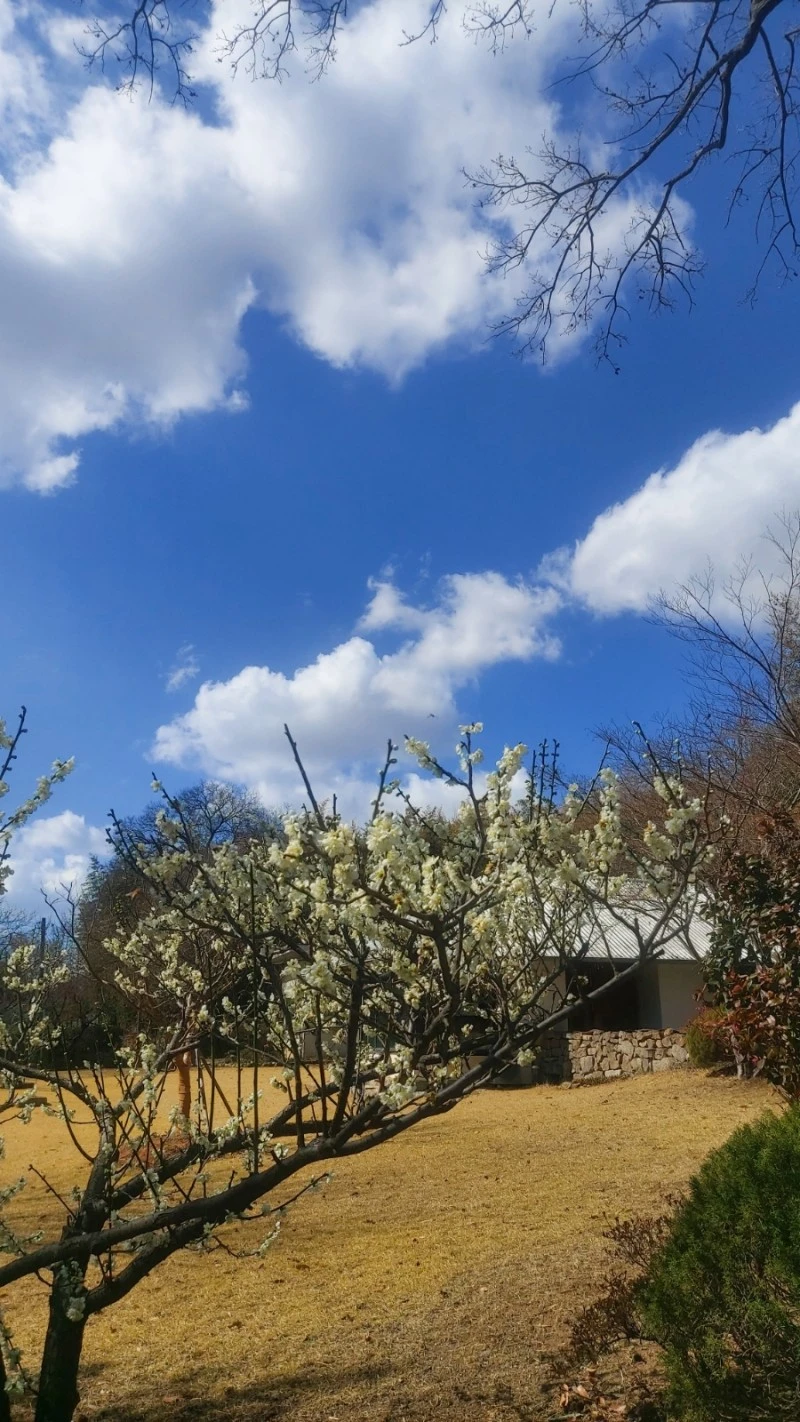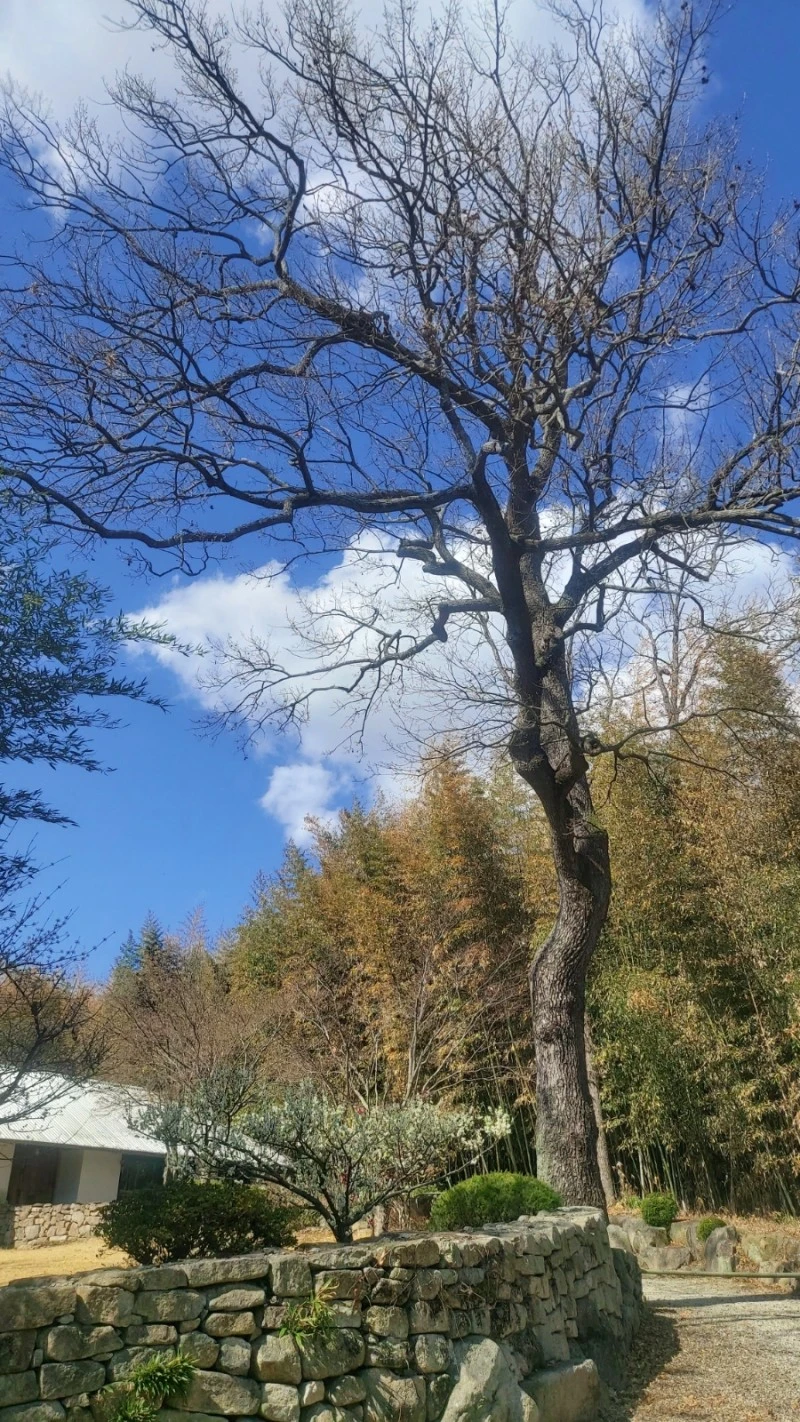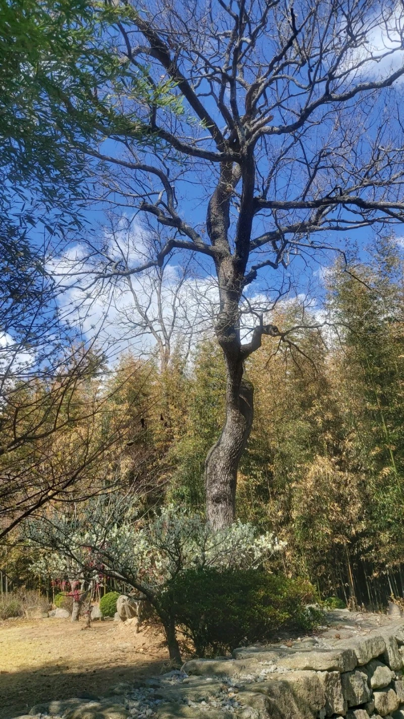 출구로 나가면 미륵산둘레길 표지판이 있어서, 그 길을 따라 미륵사지까지 걸어갈 수 있답니다. 저는 거기까지 가지는 않고, 대숲주변의 구룡마을을 천천히 걸으며 300년 수령의 느티나무와 잘 가꾸어진 정원에 핀 매화와 산수유, 쭉쭉 뻗은 소나무와 황금편백나무, 논둑길을 따라 난 보랏빛 개불알꽃을 보며 봄맞이를 했어요.
